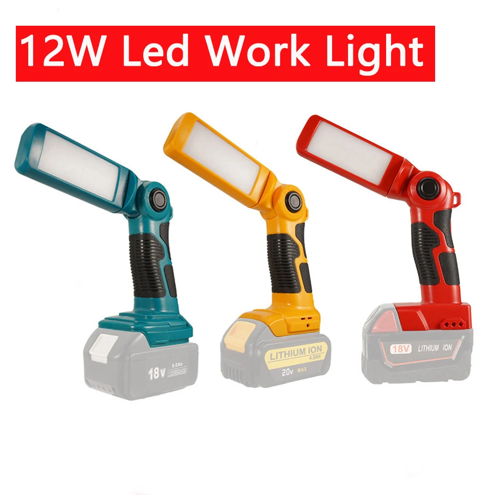 Светодиодный рабочий светильник 14,4 в-18 в, 12 Вт, фонарик с литиевой батареей, наружная и внутренняя Светодиодная лампа для DEWALT, Makita, Bosch, Milwaukee