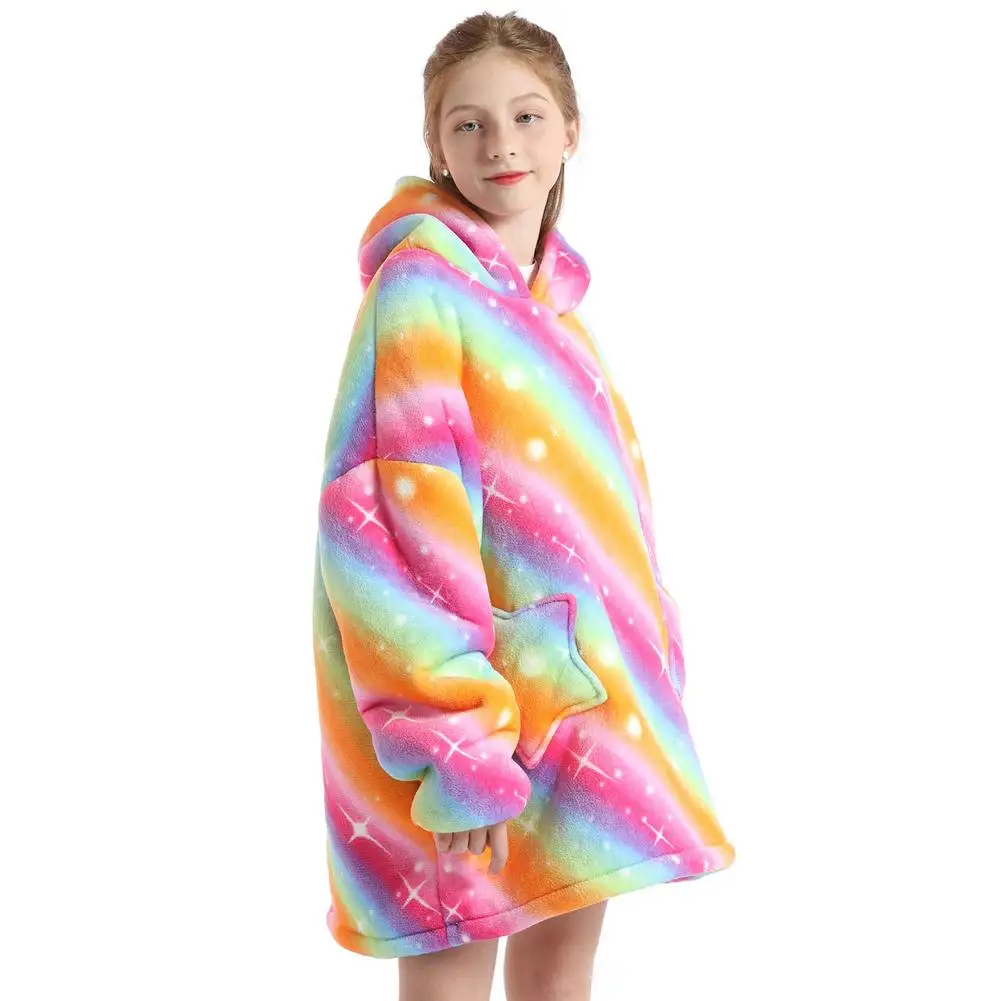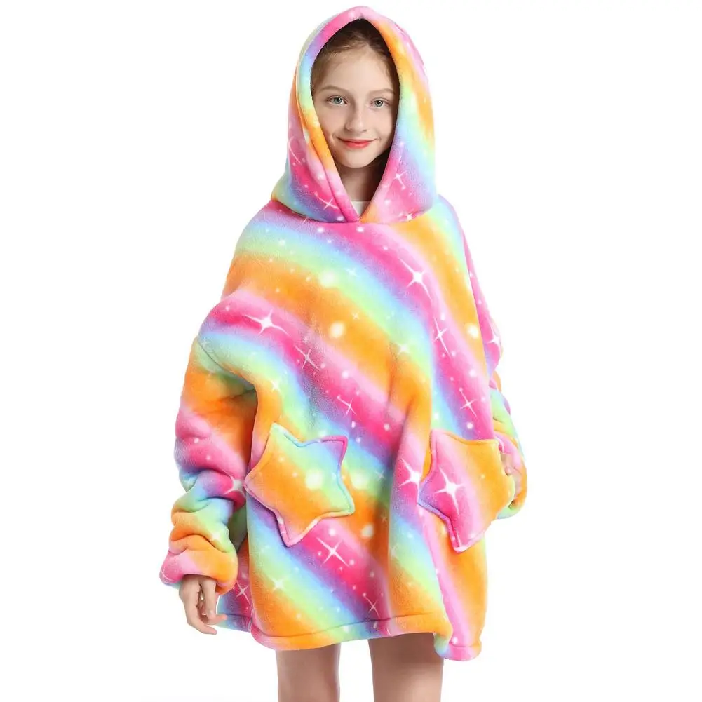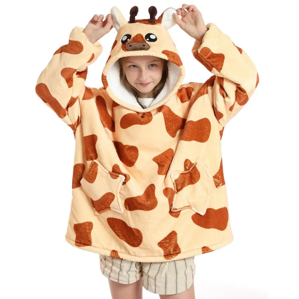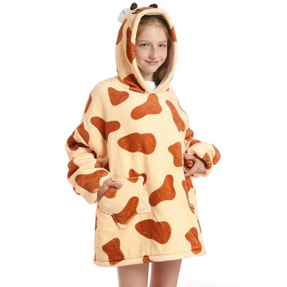 Зимнее одеяло шерпа, детские рукава, ультра плюшевая флисовая толстовка, толстовка, теплые фланелевые одеяла с капюшоном, носимый Рождественский подарок