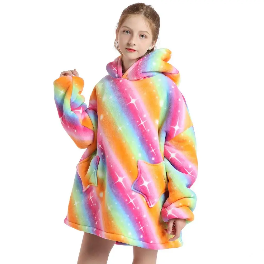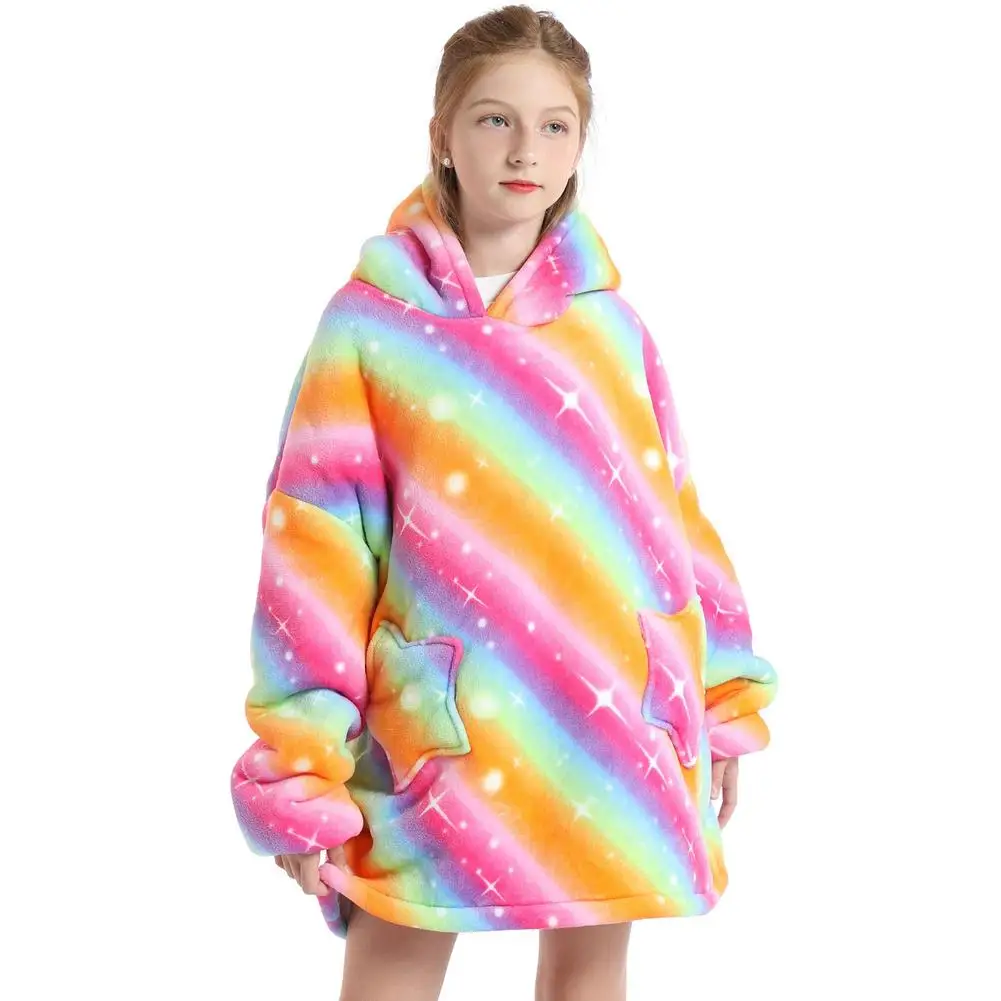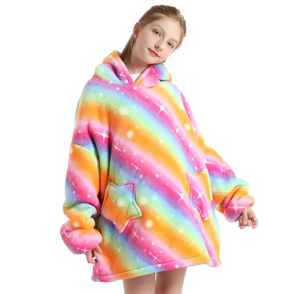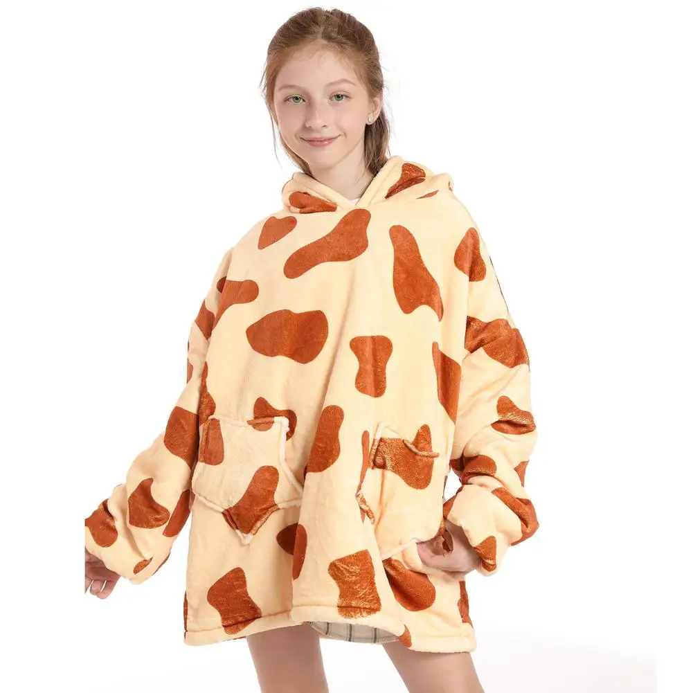 Зимнее одеяло шерпа, детские рукава, ультра плюшевая флисовая толстовка, толстовка, теплые фланелевые одеяла с капюшоном, носимый Рождественский подарок