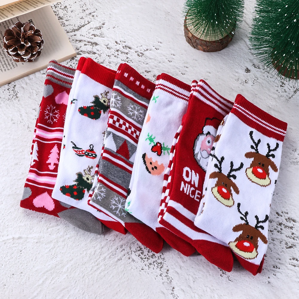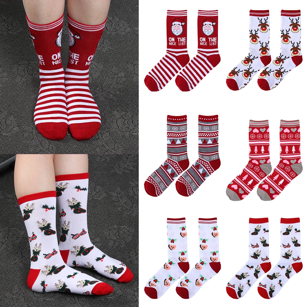 1 пара рождественских носков 3D, носки Санта Клауса, лося, Санта-Клауса, женские толстые Хлопковые вязаные рождественские смешные носки, зимние теплые Мультяшные носки