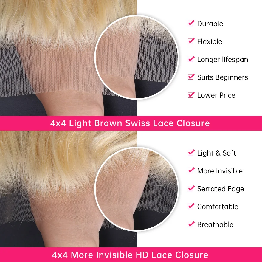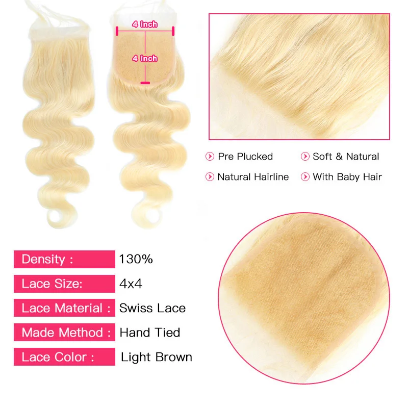 18 20 22 дюйма 4x4 HD кружевная застежка Бразильская волна 613 блонд застежка предварительно выщипанные с детскими волосами Remy 100% человеческие волосы свободная часть
