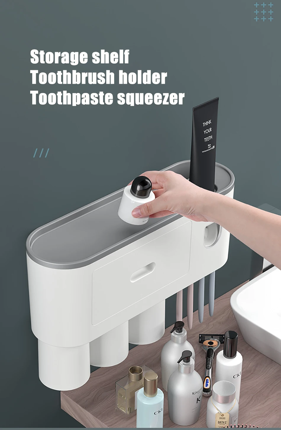 Держатель для зубных щеток, магнитный выдавливатель для зубной паст...