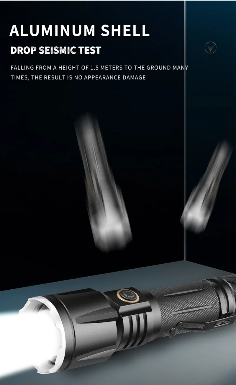Бренд: TRLIFEМодель: тактический светодиодный фонарьИсточник света: XHP50Внешний вид цвет: черныйРазмер: 16,6 см × 4 см × 3,3 смИсточник питания для XHP50 : 1 аккумулятор 26650 или 1 аккумулятор 18650Время освещения: 2-8 часовМетод зарядки: Прямая зарядка через USBДиапазон: от 200 до 500 метровКласс водонепроницаемости: IPX-6Вес для XH50: 193 г (без аккумулятора)Материал корпуса: алюминиевый сплавМасштабирование: регулируемый фокусМатериал: T6063-T6 авиационный алюминий
