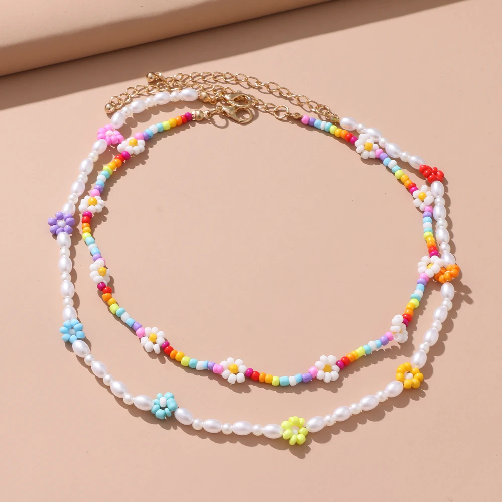 Богемные винтажные красочные рисовые Бусы Маленькая Маргаритка из бисера ожерелье цепочка Кулон модные ожерелья ювелирные изделия для женщин аксессуары