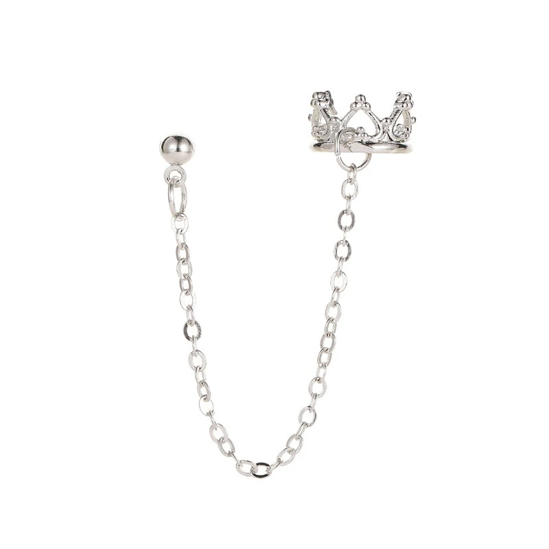 Женские U-образные серьги-клипсы в форме короны, винтажные серьги-клипсы в форме сердца без пирсинга, длинные серьги-гвоздики на цепочке, трендовые ювелирные украшения, 2021