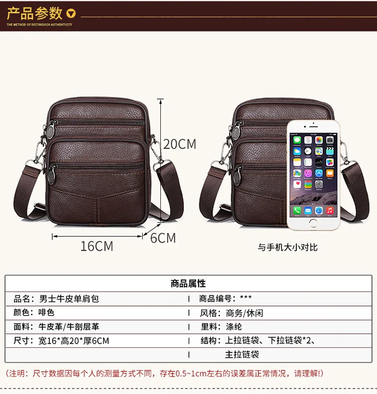 Мужская кожаная маленькая сумка-мессенджер, многофункциональная сум...