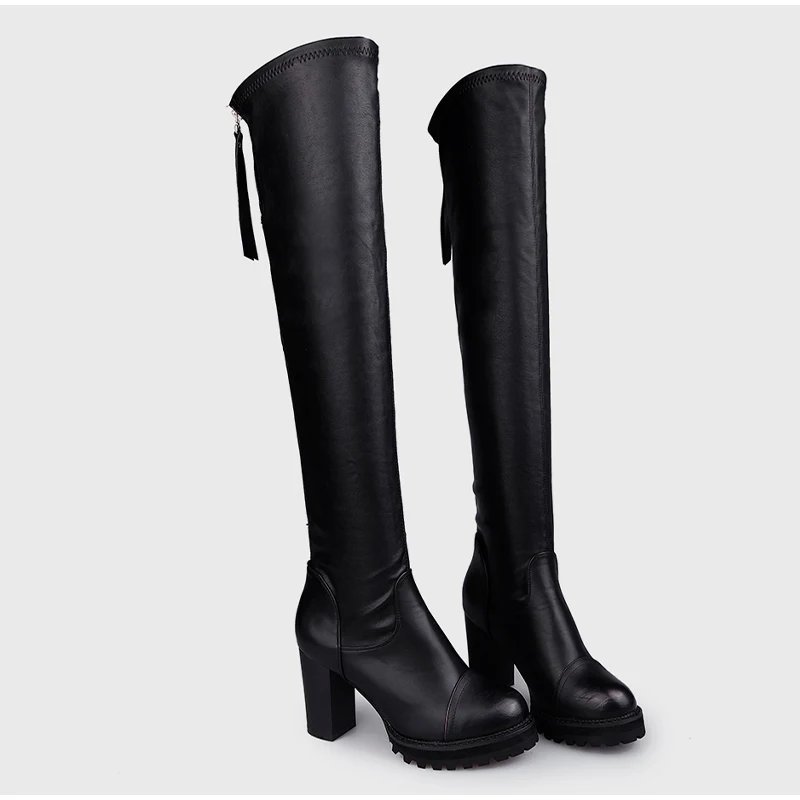 Сапоги женские выше колена, на толстом каблуке, из мягкой искусственной кожи, на молнии