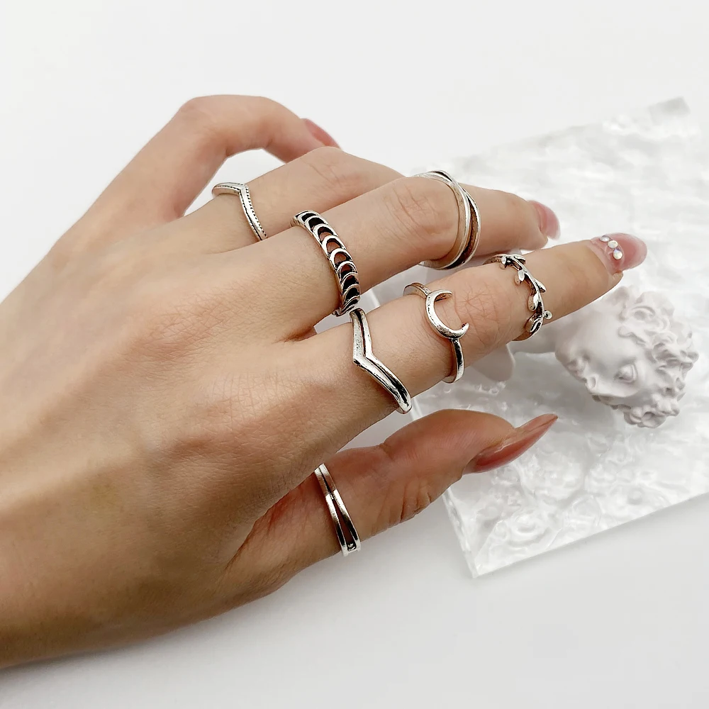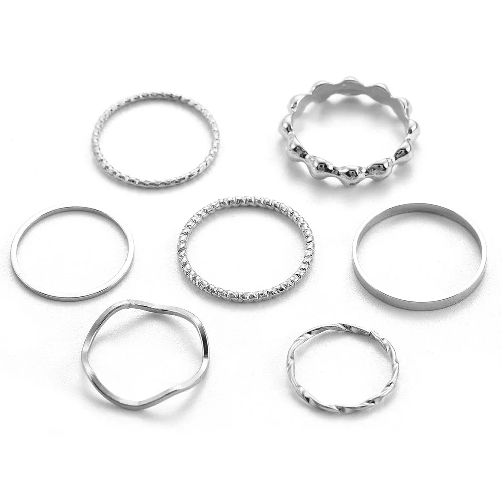 7 шт.компл. модный панк минималистичный миди круглый твист кольцо в богемном стиле для женщин винтажные металлические бриллианты ювелирные изделия