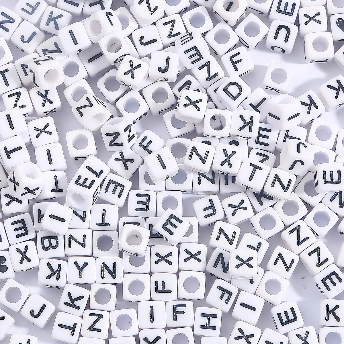 100 шт. 6x6 мм, квадратные белые акриловые бусины с буквами в форме сердца для изготовления ювелирных изделий, Детские материалы сделай сам, бусины-разделители россыпью