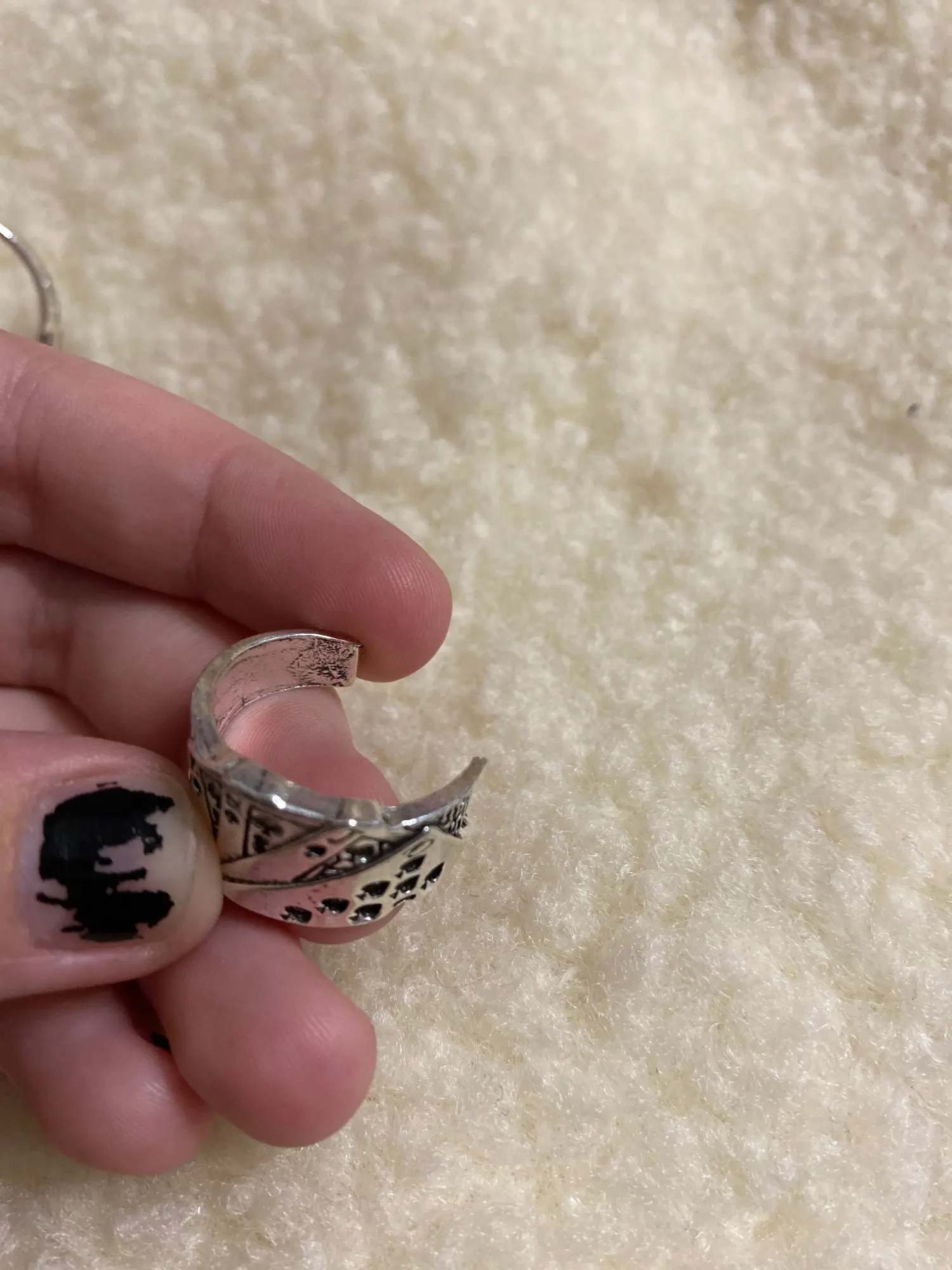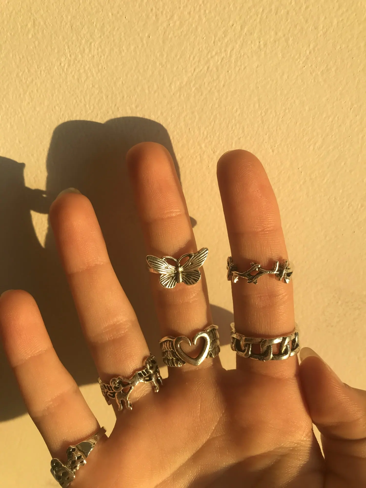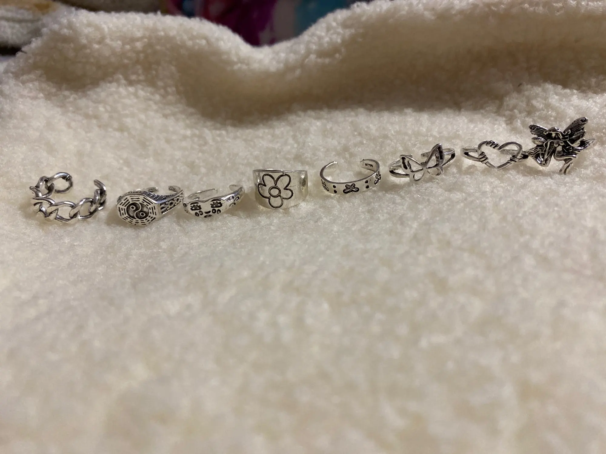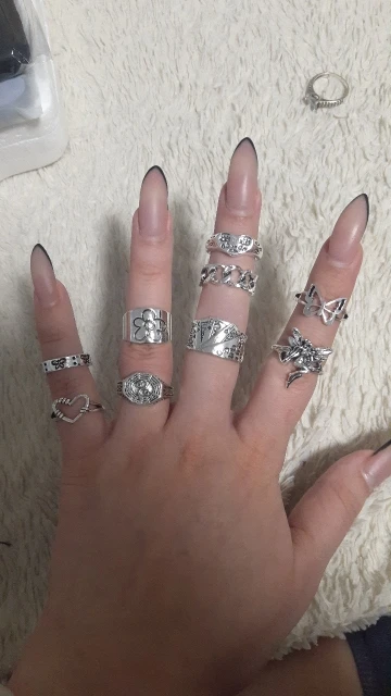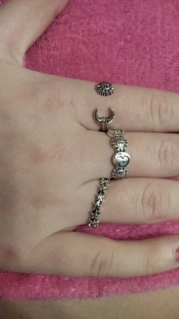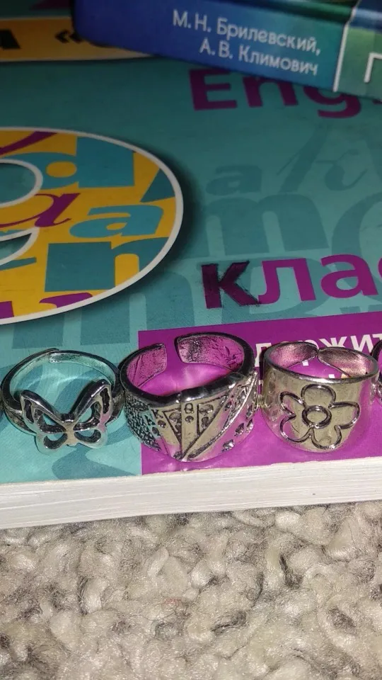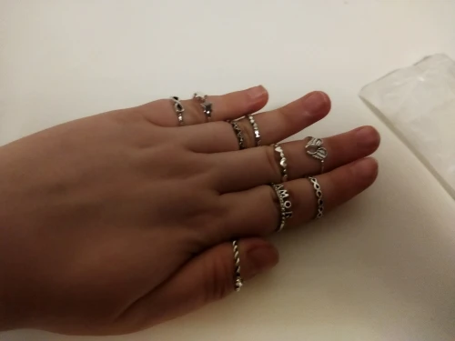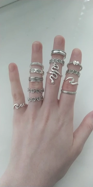 Предупреждаю. Колечка с алюминия(не все) слабые. Если надумаете уменьшать или увеличивать, будьте аккуратны.Они все разного размера, мои пальцы не сильно тонкие, можно заметить попытки снять одно с колец (покраснение) Я специально их надела так, что бы можно было увидеть на какие пальцы они подходят(исключительно у меня так, подруге подошли абсолютно все, кроме огромных т.к они банально большие)