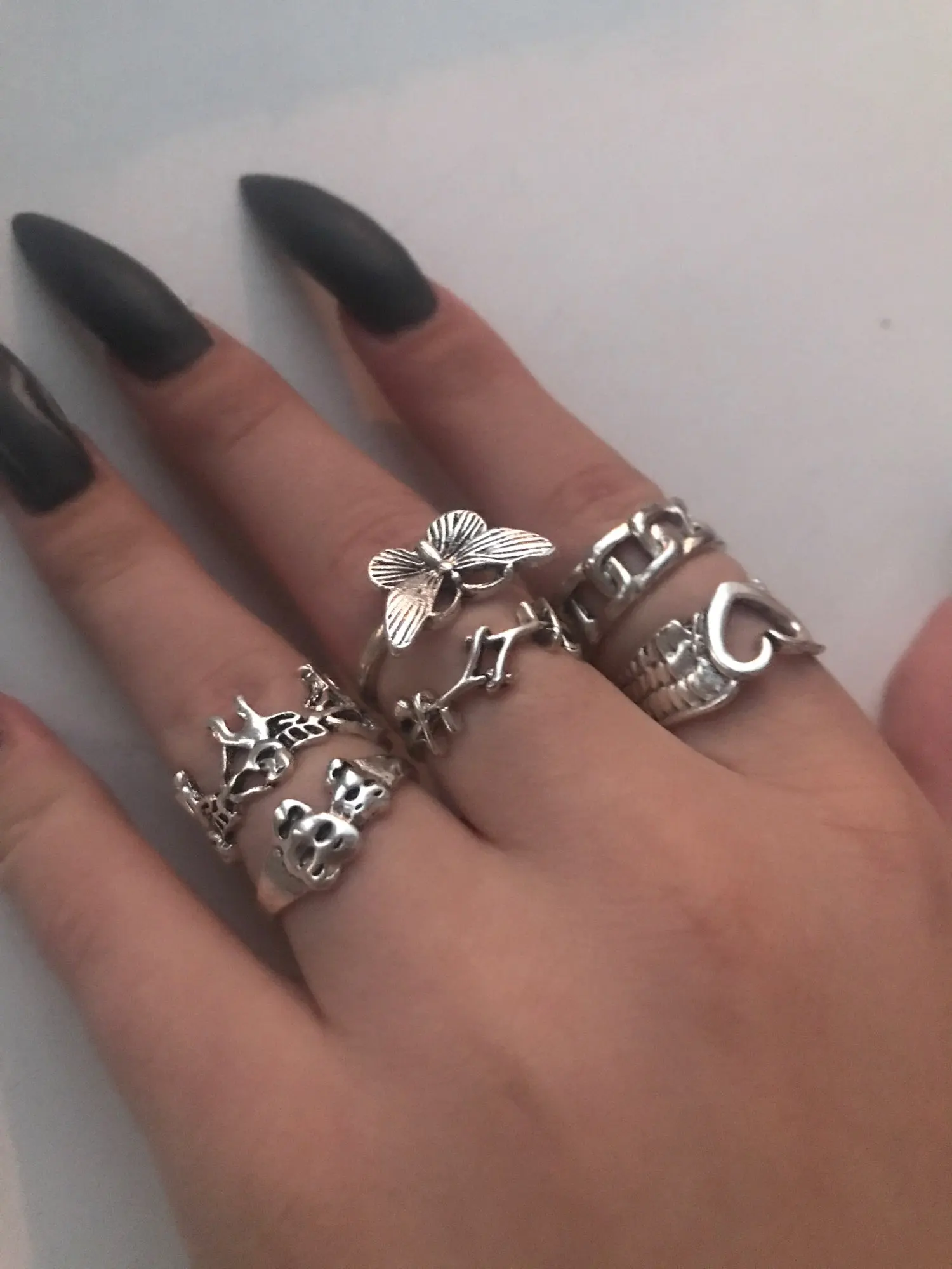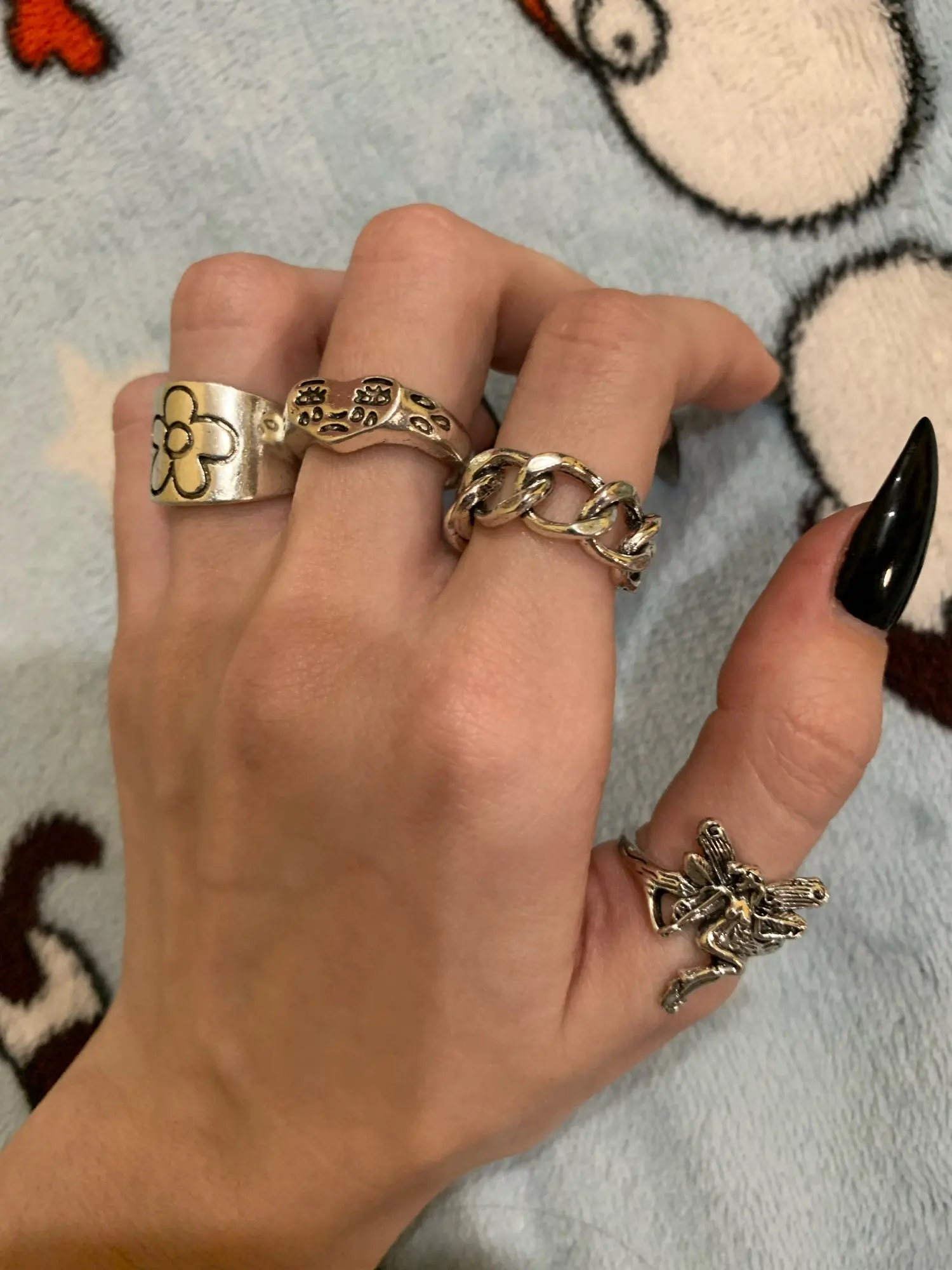 Набор колец в стиле панк и готического ангела с феей для мужчин и женщин, ретро, серебряное покрытие, бабочка, сердце, очаровательное кольцо на палец, ювелирные изделия кольца кольцо женское кольцо мужское кольца 2021