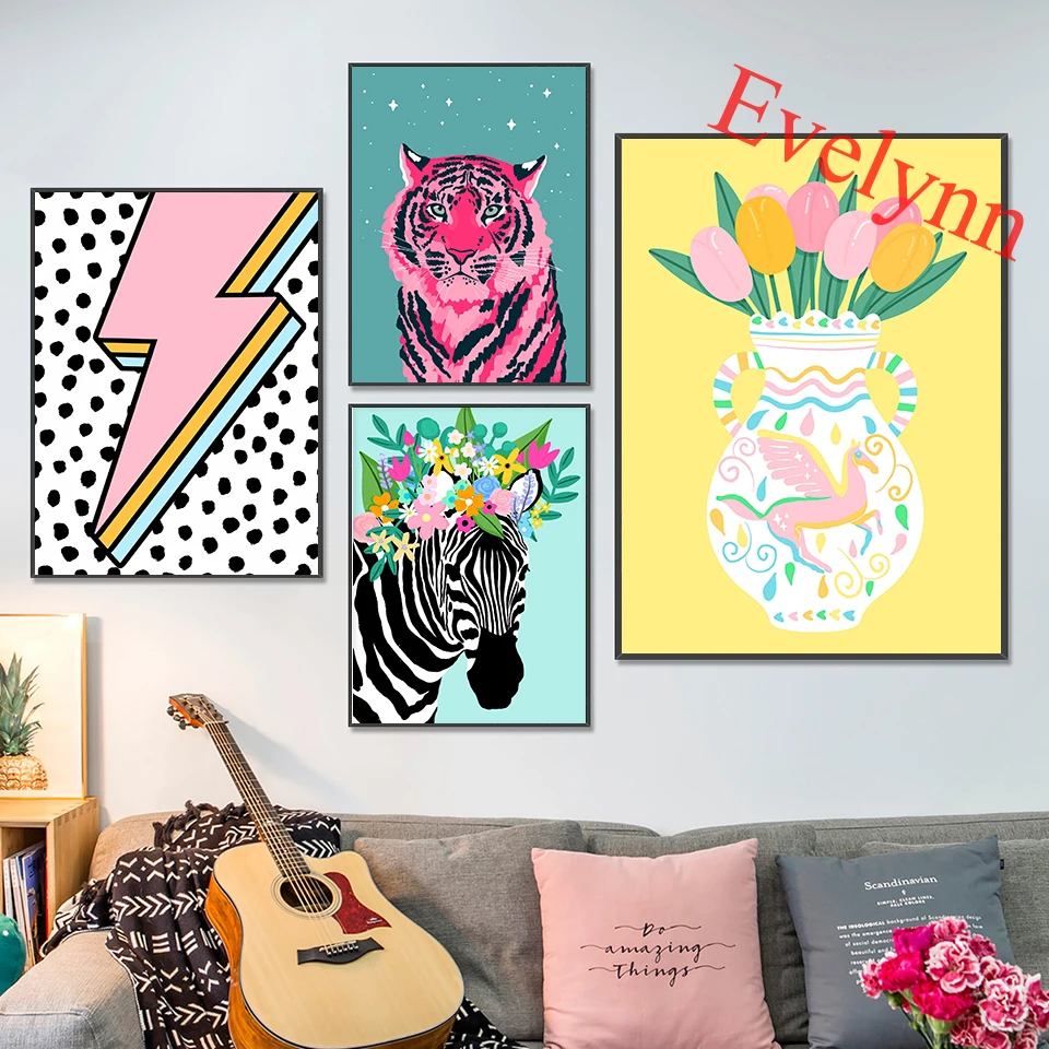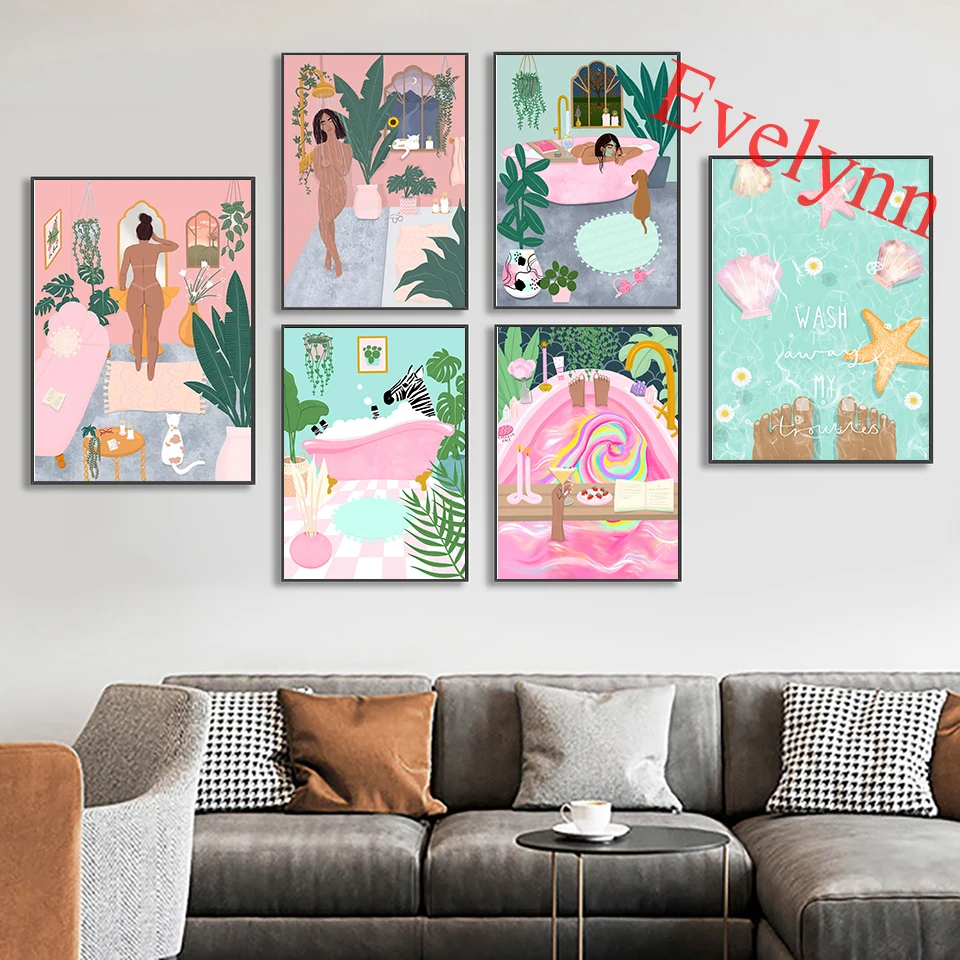 Современный скандинавский розовый постер молния феминизм Цитата ванная Зебра растительный Гепард Спальня Гостиная Декор холст для ванной настенный принт