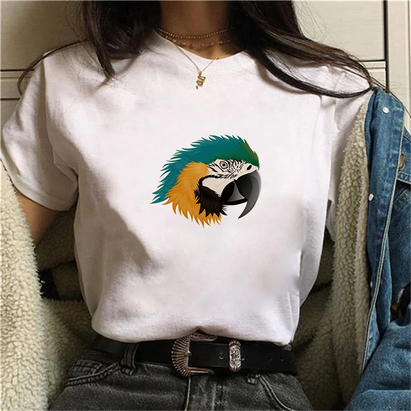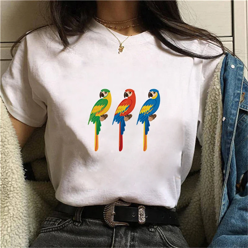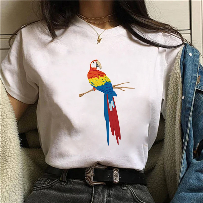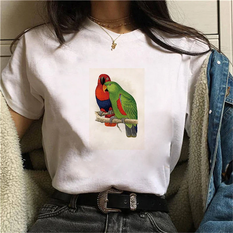 Топ Женская футболка с принтом попугая Топ Футболка женская футболка Ulzzang Футболка Harajuku Повседневная винтажная забавная футболка с принтом для женщин