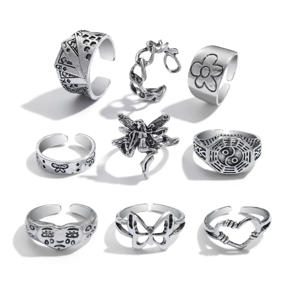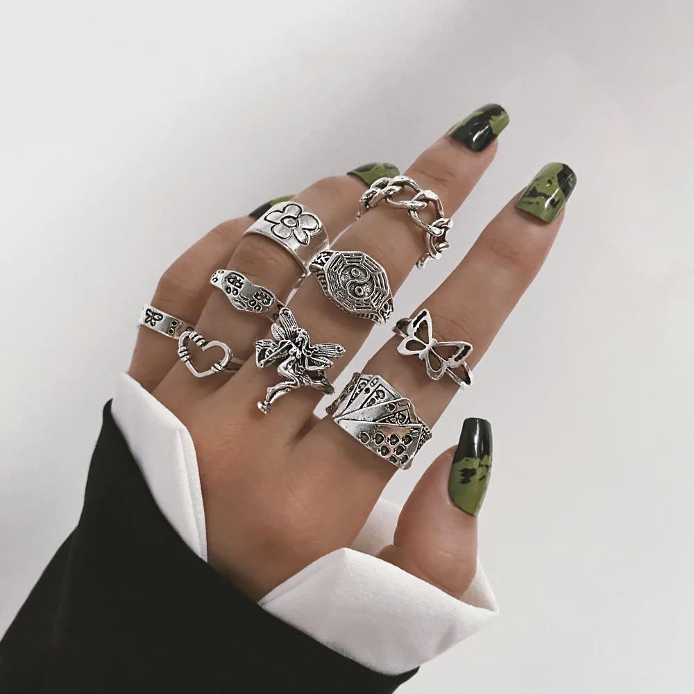 9 шт. Винтажное готическое кольцо с изображением бабочки и цветком,...