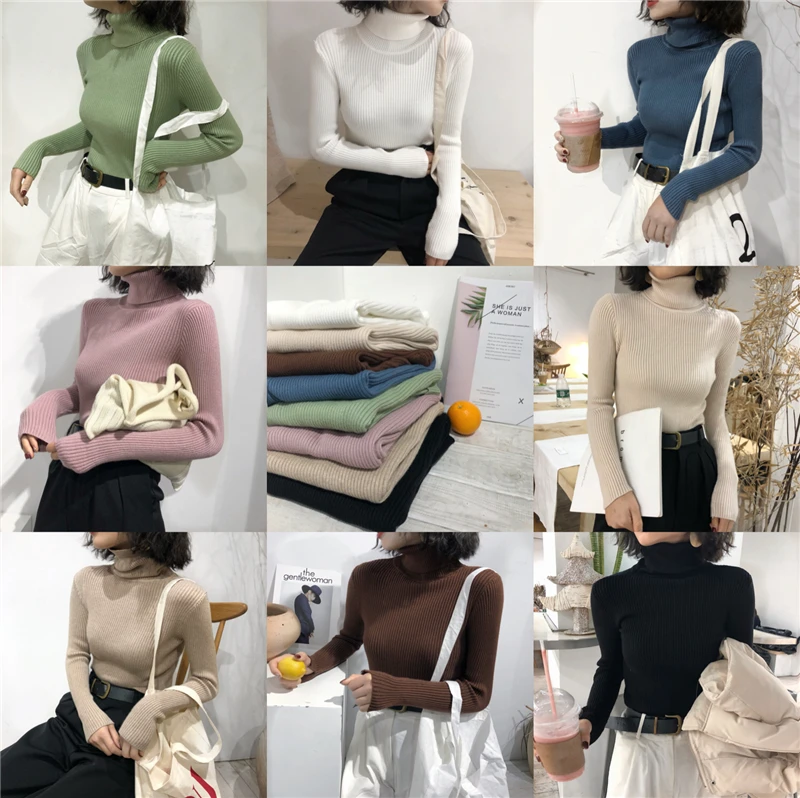 Свитер с высоким воротником, женские осенне-зимние топы, корейский облегающий Женский пуловер, джемпер, вязаный свитер, женский свитер