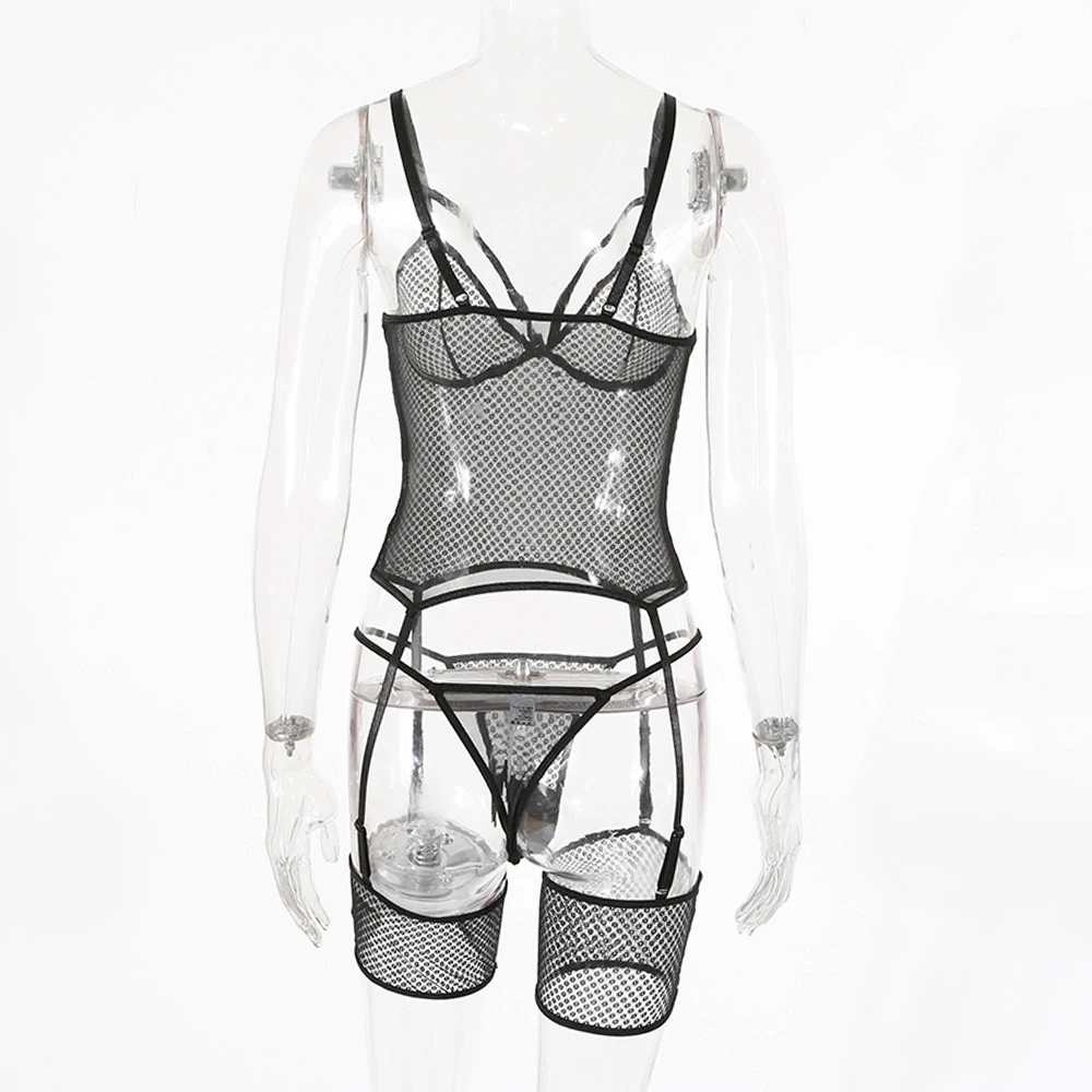 Сексуальное женское нижнее белье, цельный комплект, прозрачное чувс...
