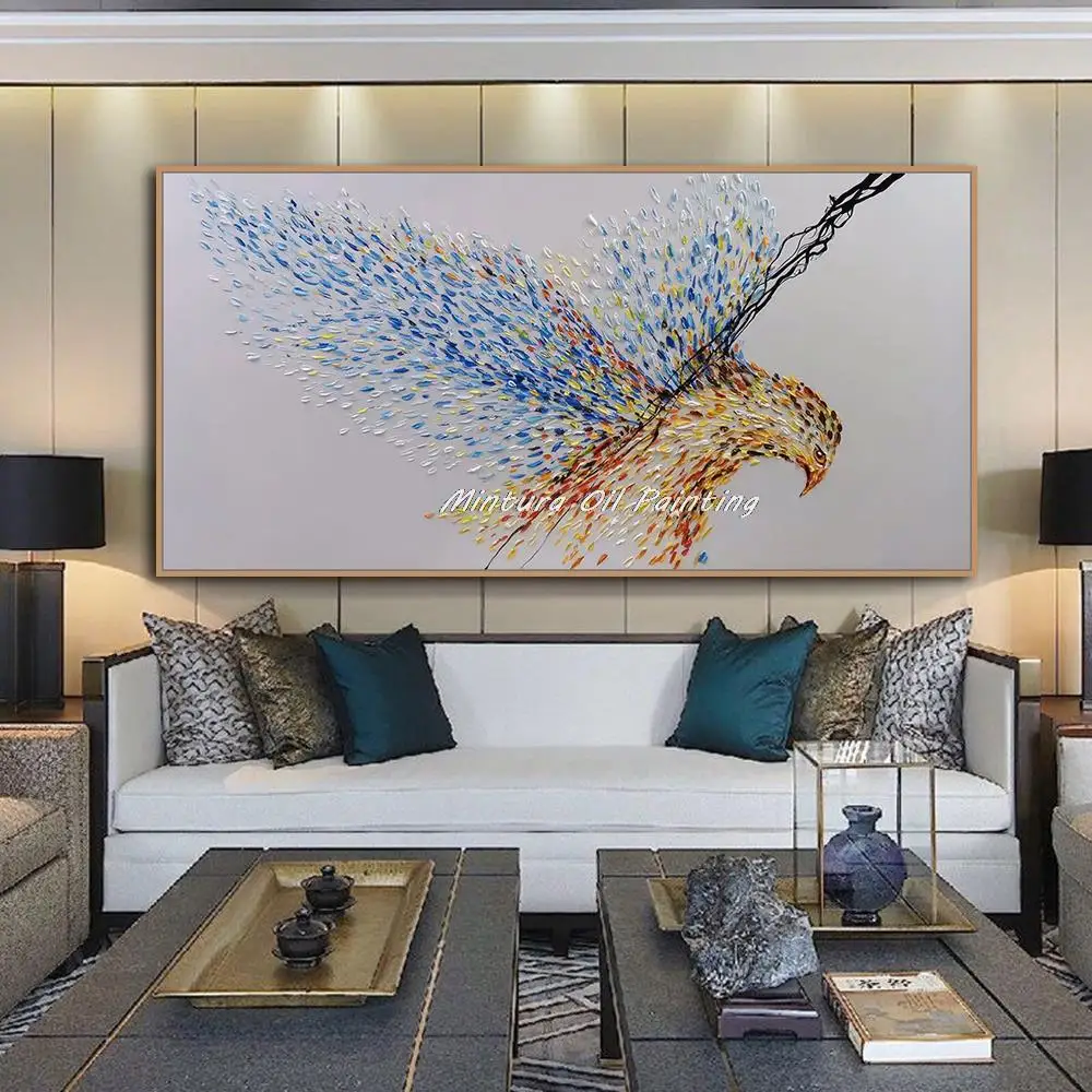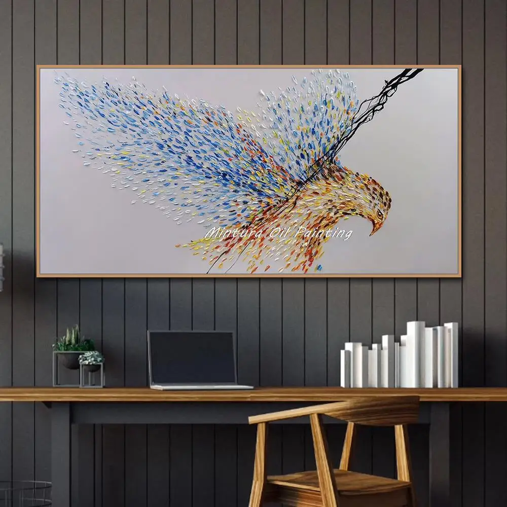 Настенная картина Mintura для гостиной, картина маслом на холсте, ручная роспись, точечная картина с орлом, украшение для дома, картина с животными