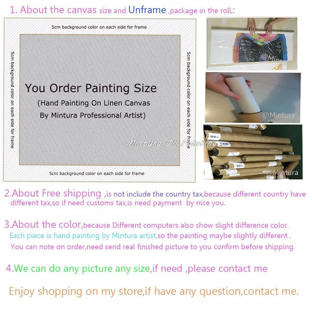 Например,Если вы покупаете размер 100x100 см, вы получите холст Размер картины 110x110 см,Если вы покупаете размер 50x100 см, вы получите холст Размер картины 60x110 см,И посылка в рулоне, пожалуйста, обратитесь к картинке.
