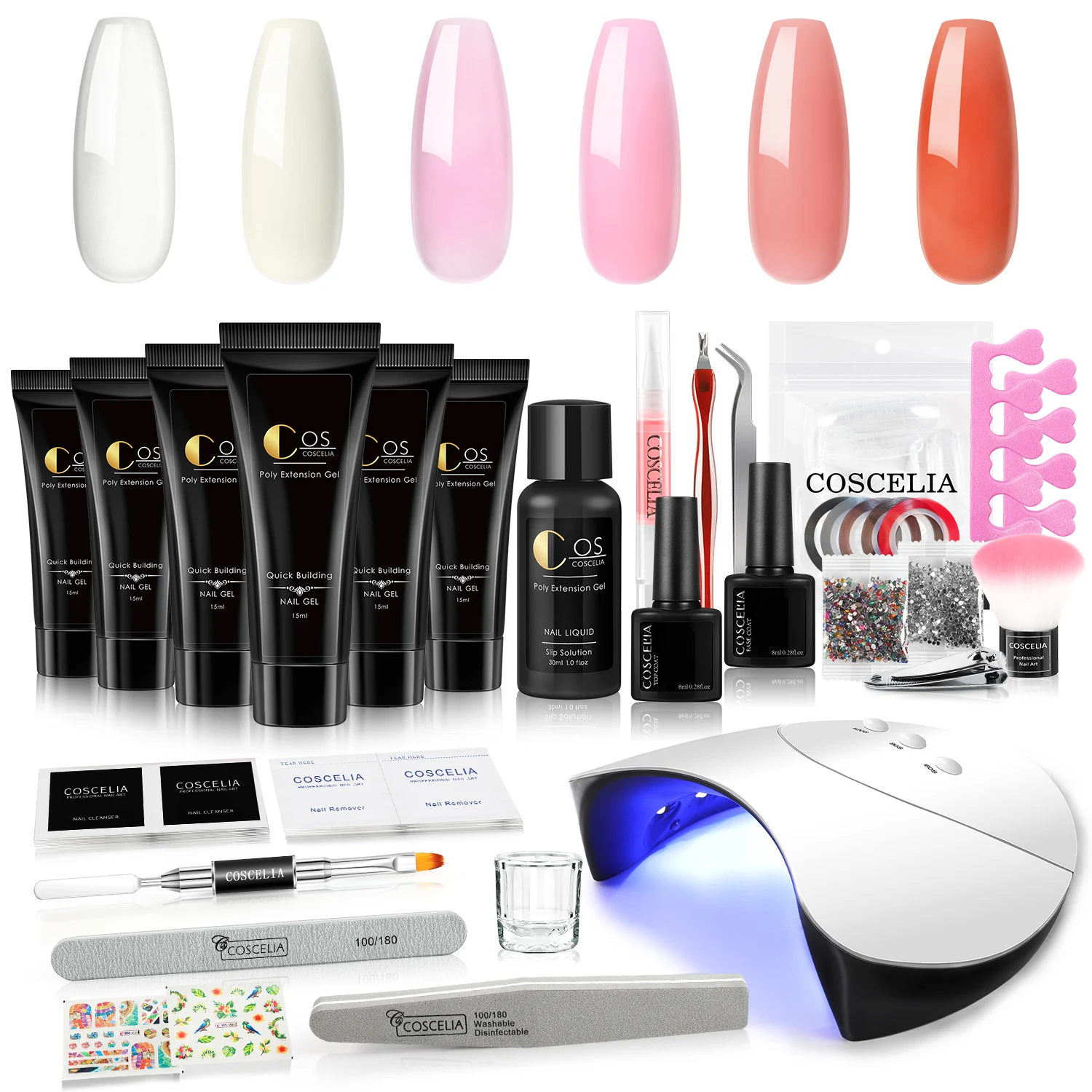 Набор инструментов для наращивания гель-лака COSCELIA Poly набор гелей для ногтей с УФ-лампой, лак для ногтей