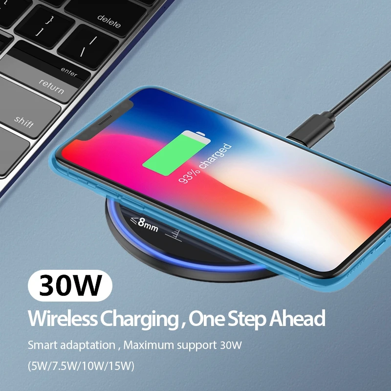 30 Вт Qi Беспроводное зарядное устройство для iPhone 12 11 XS X XR ...