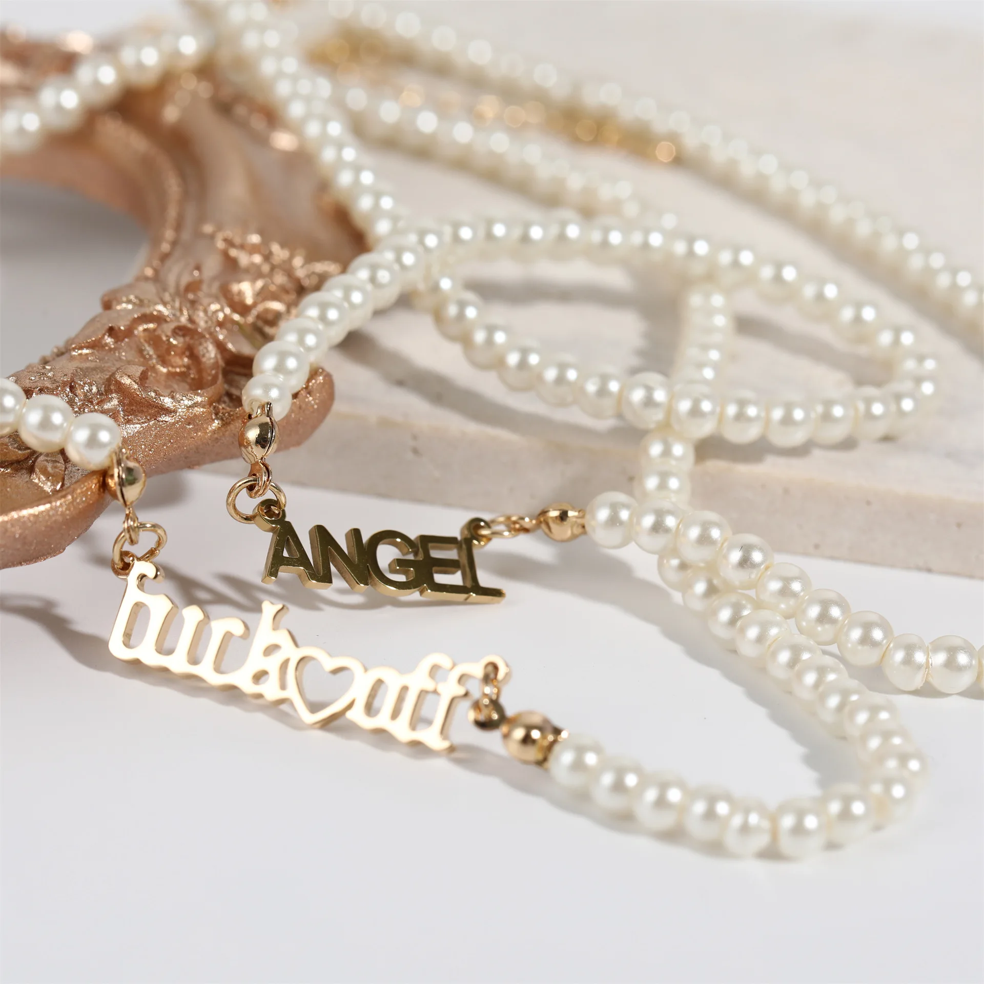 Цепочка с подвеской в виде буквы ангела, Пресноводный Жемчуг, ожерелье для женщин, подарок для девочек, барочный жемчуг, металлическая подвеска, ожерелья, колье