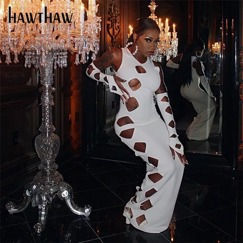 Женское осеннее облегающее платье Hawthaw, белое длинное платье-карандаш с вырезами, осенняя одежда 2021, оптовая продажа товаров для деловой уличной одежды