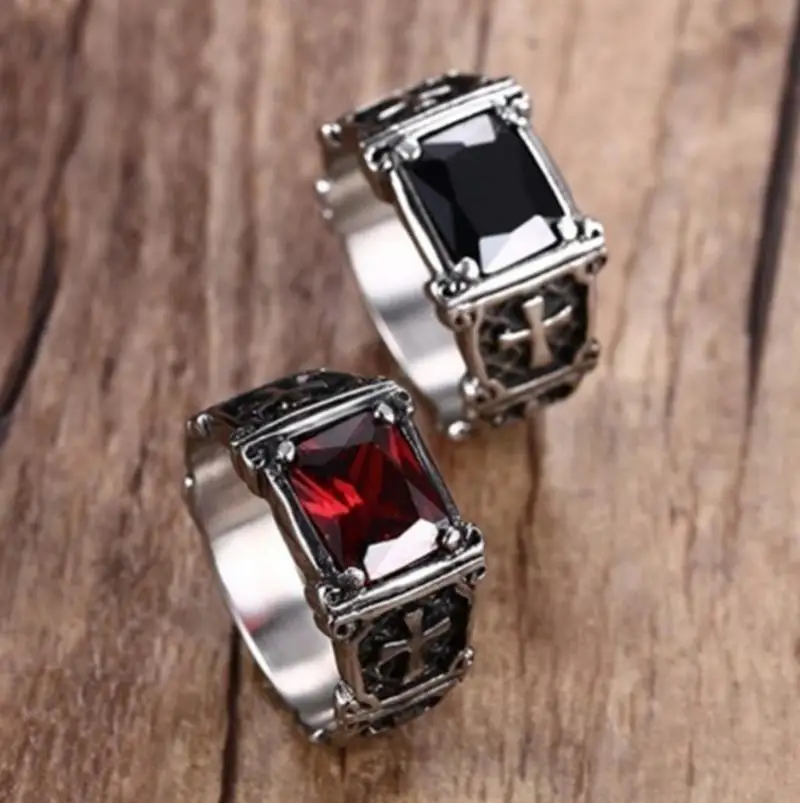 Templar Knight высокое качество панк стиль красный щит крест кольцо для мужчин металлическое кольцо