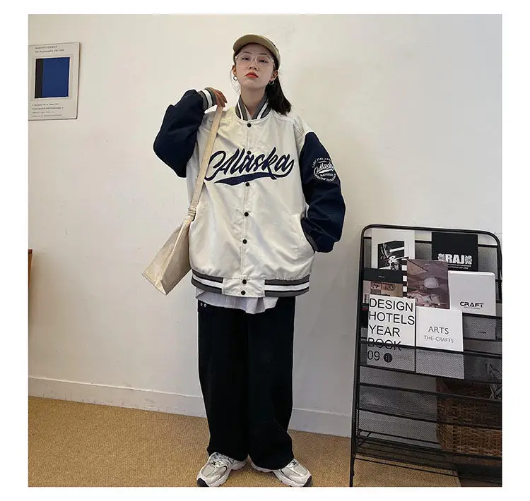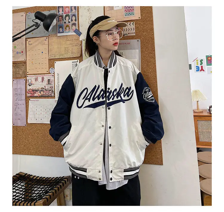 Куртка-бомбер женская в стиле унисекс, бейсбольная Униформа с принтом наклеек, куртка в стиле ретро, большие размеры Y2K, уличная одежда в стиле хип-хоп