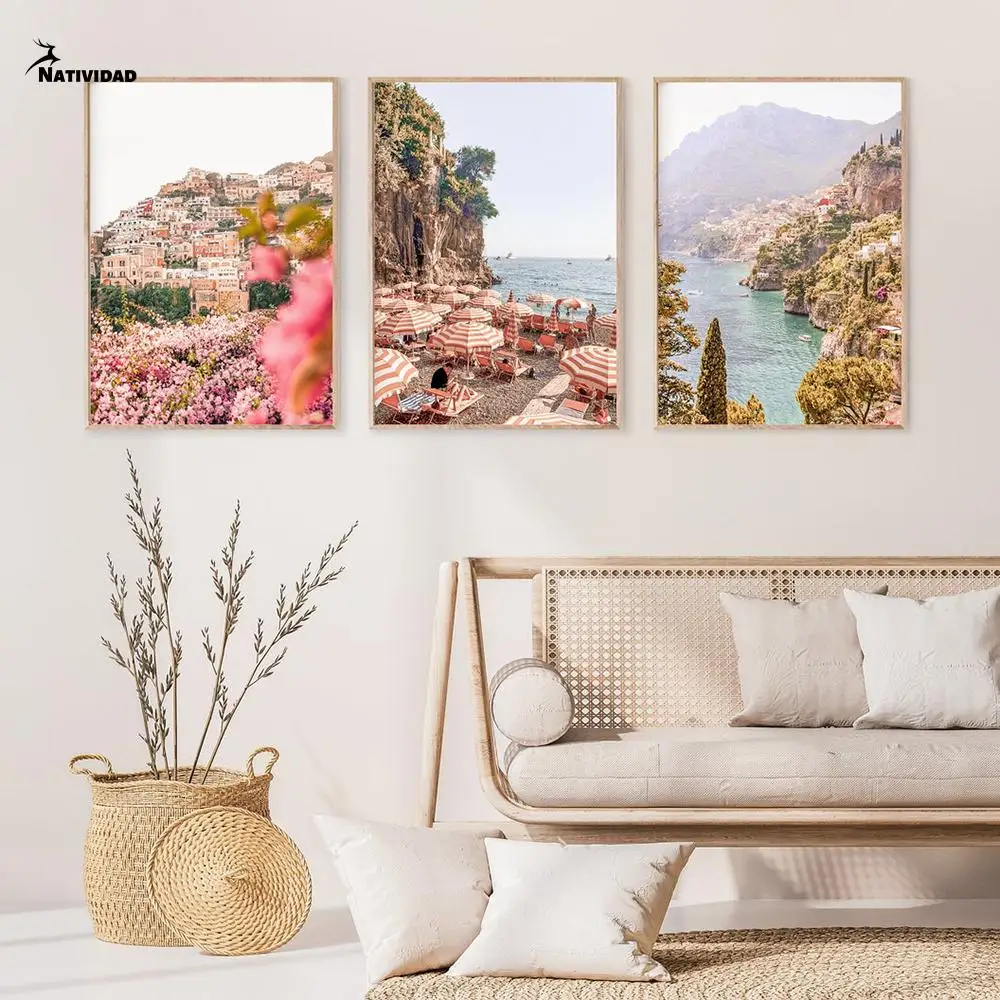 Постер Positano на холсте с изображением итальянского берега Амальфи, Цветной Настенный постер в стиле архитектуры, домашний декор для гостиной и спальни