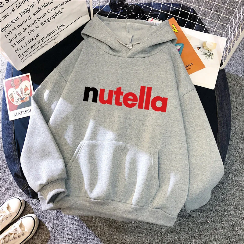Новинка 2021, осенняя Женская толстовка с капюшоном, мультяшный простой толстовка с надписью Nutella, мужской свитер, зимняя женская одежда, пуловер
