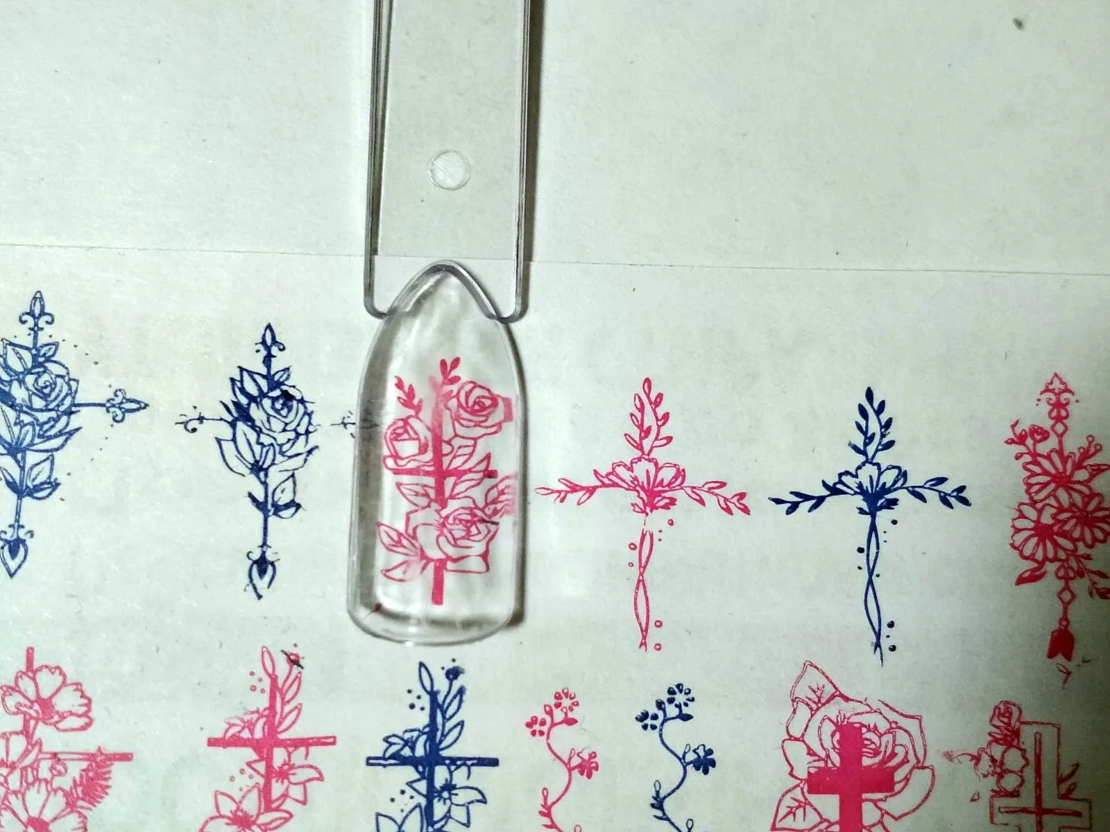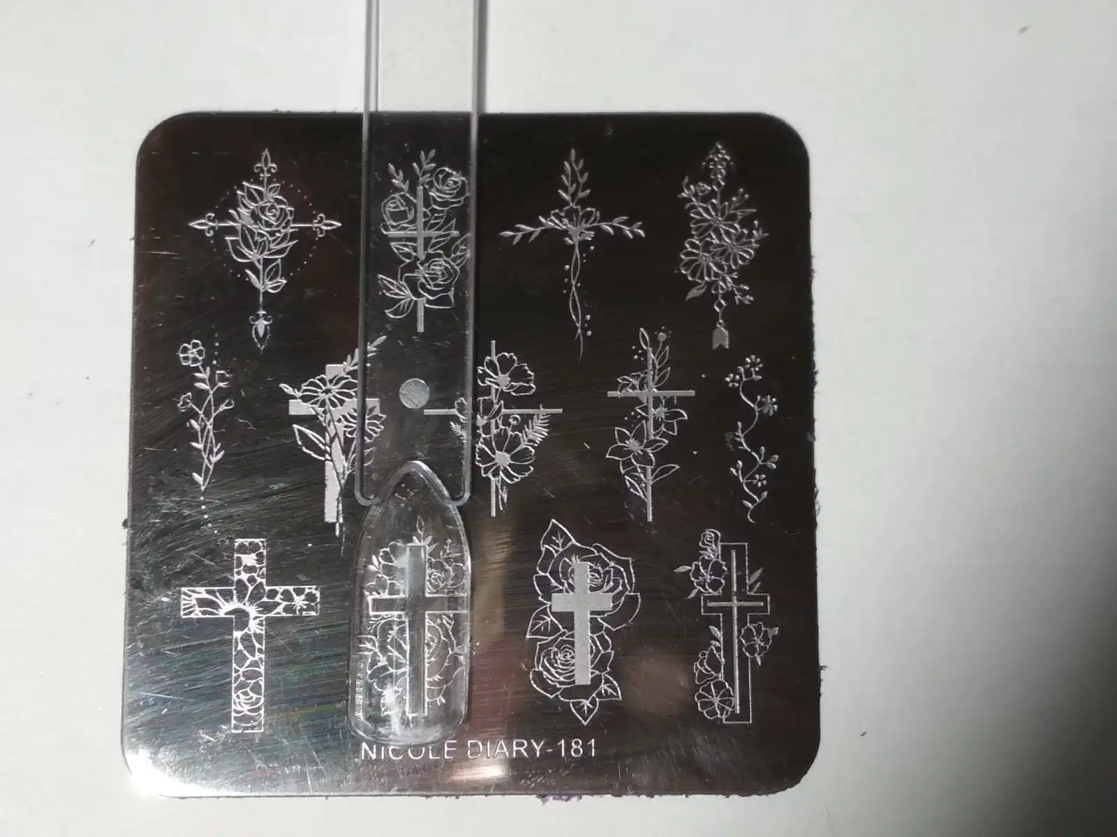 Пластина огонь. Глубокая гравировка, всё отпечатывается отлично. Рисунки красивые и не слишком большие, но и не маленькие, требуют всё же длины ногтей, на совсем короткие ногти полностью не поместятся. Примерный размер изображений 1,7 см * 0,9 см, это средние цифры, у изображений не одинаковый размер. Размер ногтя прозрачной типсы на фото 2,5*1 см. Думаю это одна из лучших пластин на Алиэкспресс с таким дизайном, с крестами, все рисунки прекрасно сочетаются между собой и все они классные. На этой пластине нет ни 1-го рисунка который бы мне не нравился или не вписывался в общий стиль, хотя обычно на других моих пластинах мне нравится не больше половины рисунков, здесь же мне безумно нравятся они все, все без исключения. Ещё понравилось что пластина была в оригинальном брендовом пакетике который на первых двух фото у меня представлен, заказывала пластину николь дайри у другого продавца и там к сожалению такого красивого пакетика не было. Доставка в спб 46 дней. Обожаю эту пластину :)