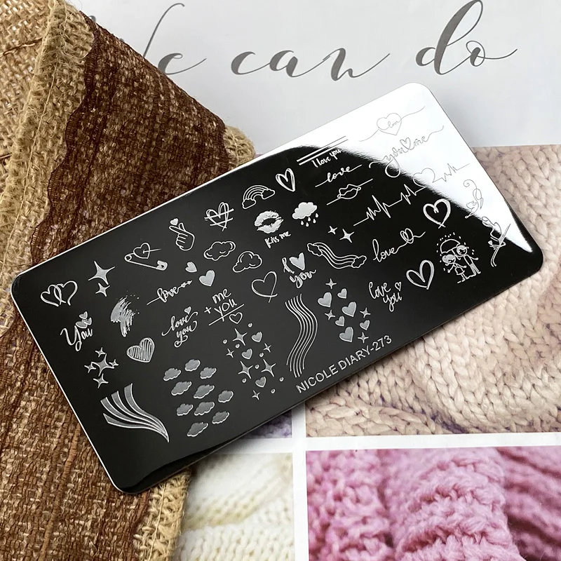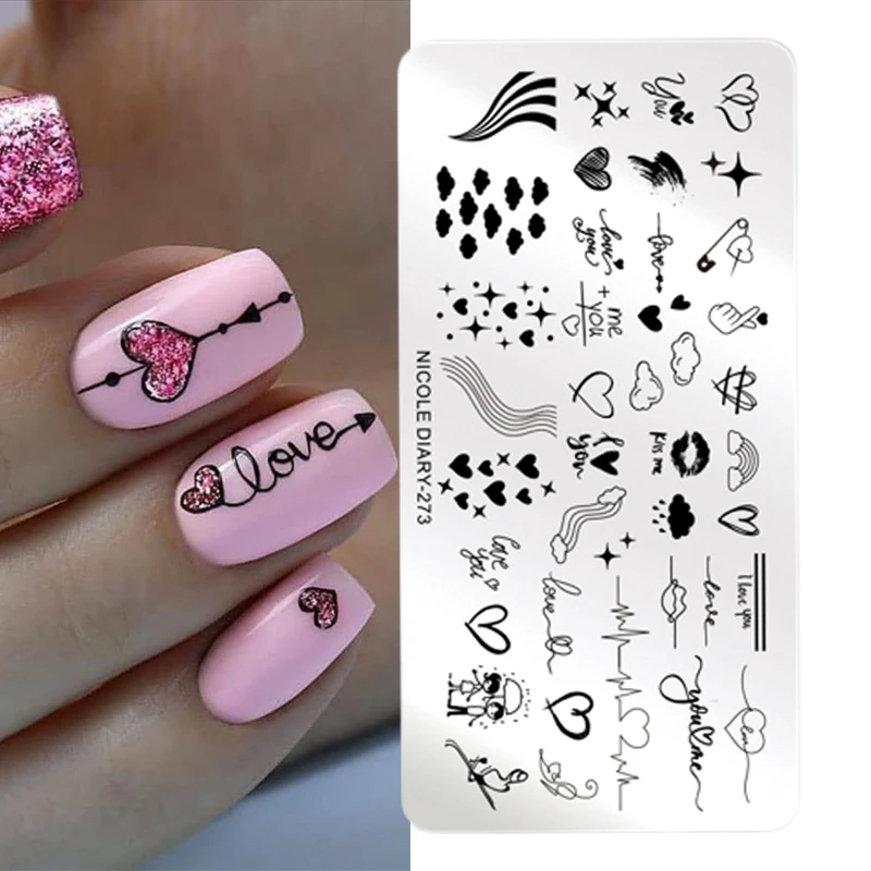 Трафареты NICOLE DIARY для стемпинга ногтей на День святого Валентина, цветок, любовь, сердце, трафареты для фотографий