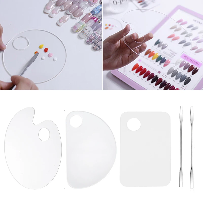 Прозрачная акриловая палитра, косметическая пластина для смешивания, набор для ногтей, миксер для рисования с лопаткой, стержень для дизайна ногтей, инструменты для самостоятельного маникюра