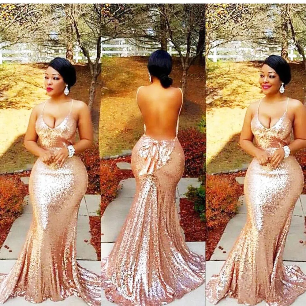 Женское вечернее платье-русалка, длинное платье с открытой спиной, блестками и бантом на тонких бретельках, для выпускного вечера