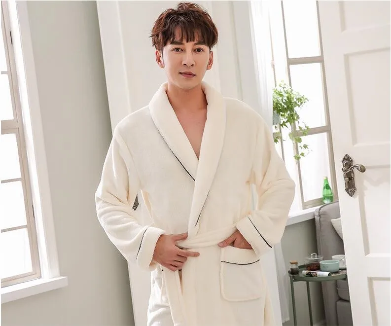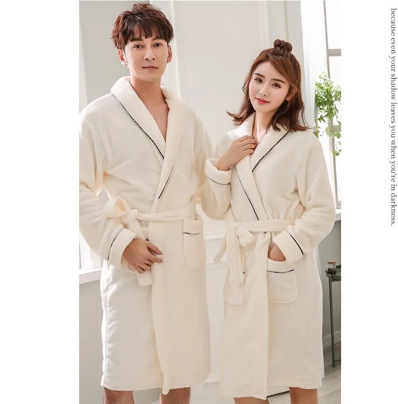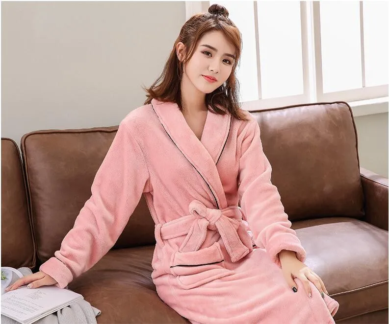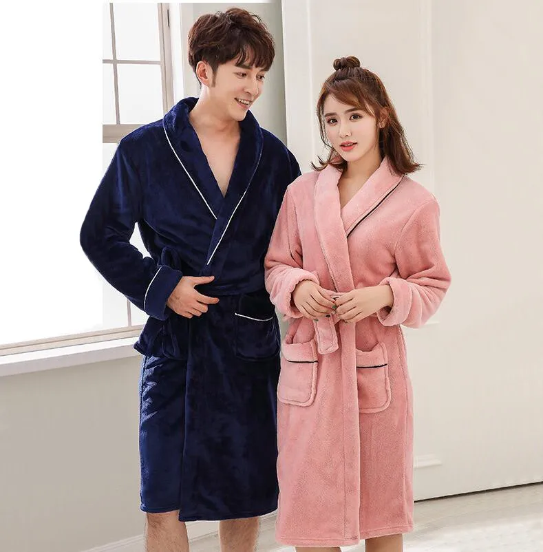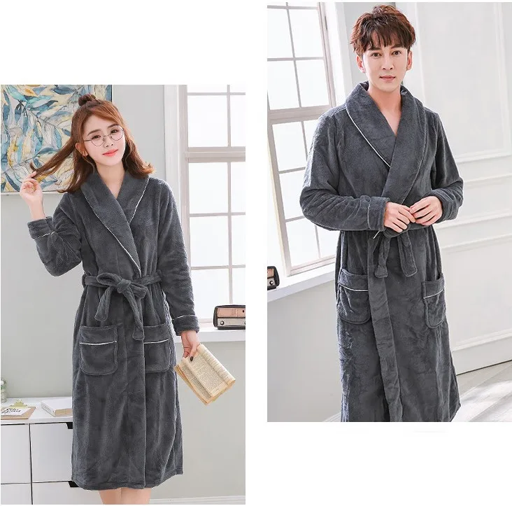 Халат для пар, коралловый флисовый халат с отворотом и поясом, женский халат, кимоно с длинным рукавом, зимний мужской Халат