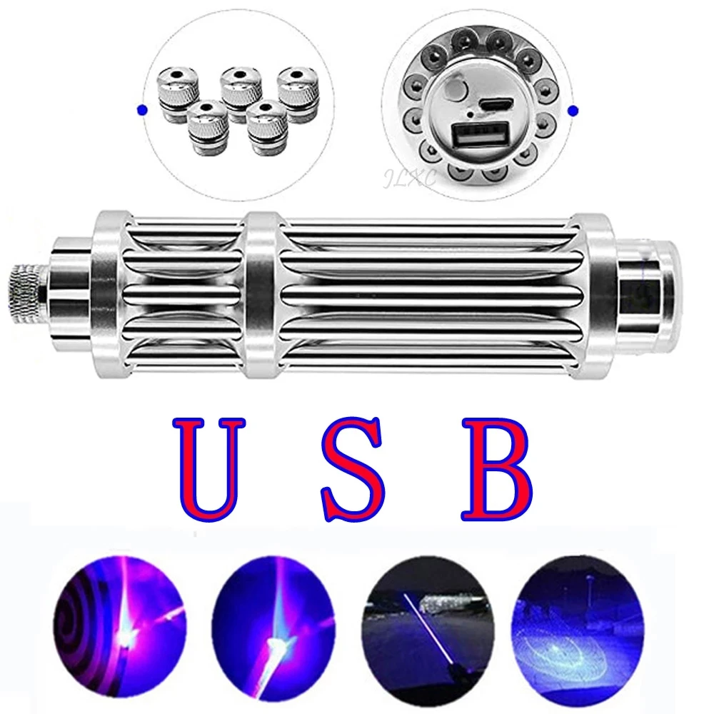 Лазерная USB-указка, мощная Синяя лазерная указка со встроенным акк...