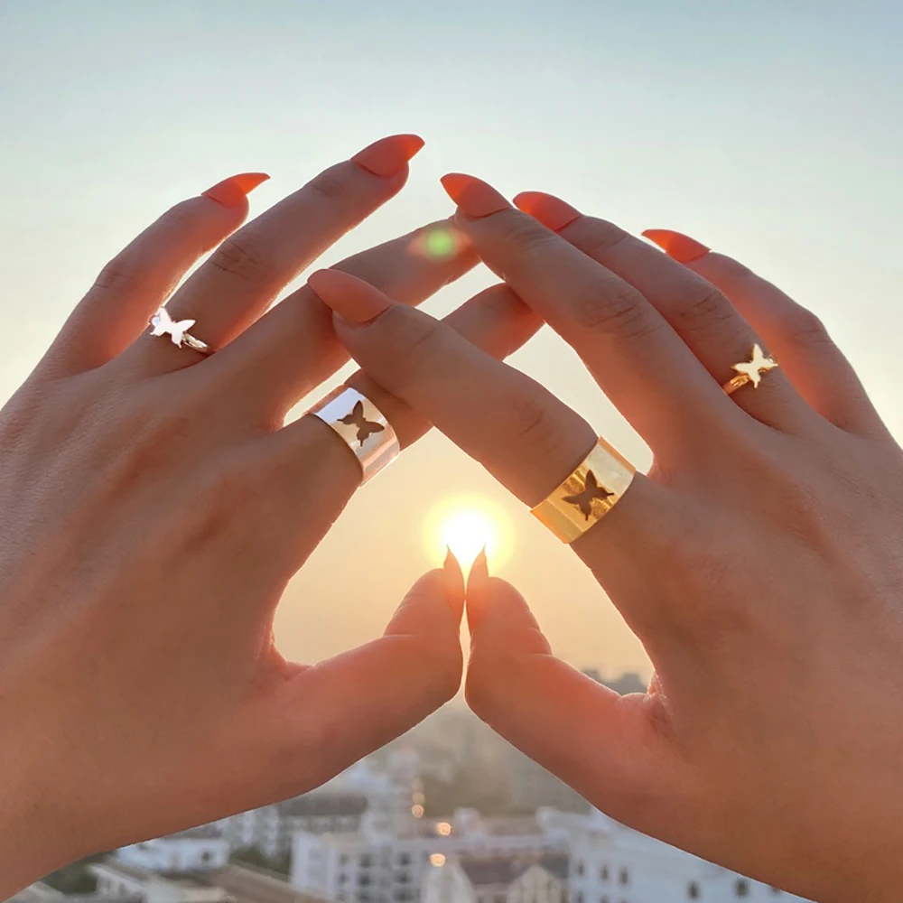 Регулируемое обручальное кольцо в виде бабочки Модные серебряные кольца-бабочки для женщин и мужчин, набор колец для влюбленных, регулируемое обручальное кольцо для дружбы, обручальное кольцо, подарок