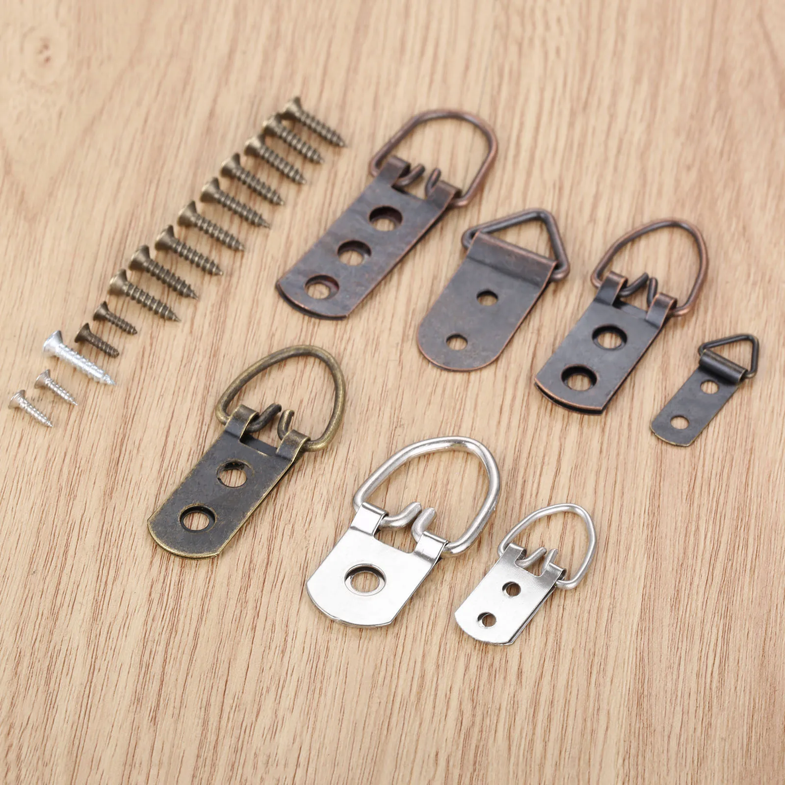 5 шт. треугольные D кольцевые вешалки из цинкового сплава крючки для фоторамки настенный держатель для картины с винтами античная бронзакрасная медьсеребро