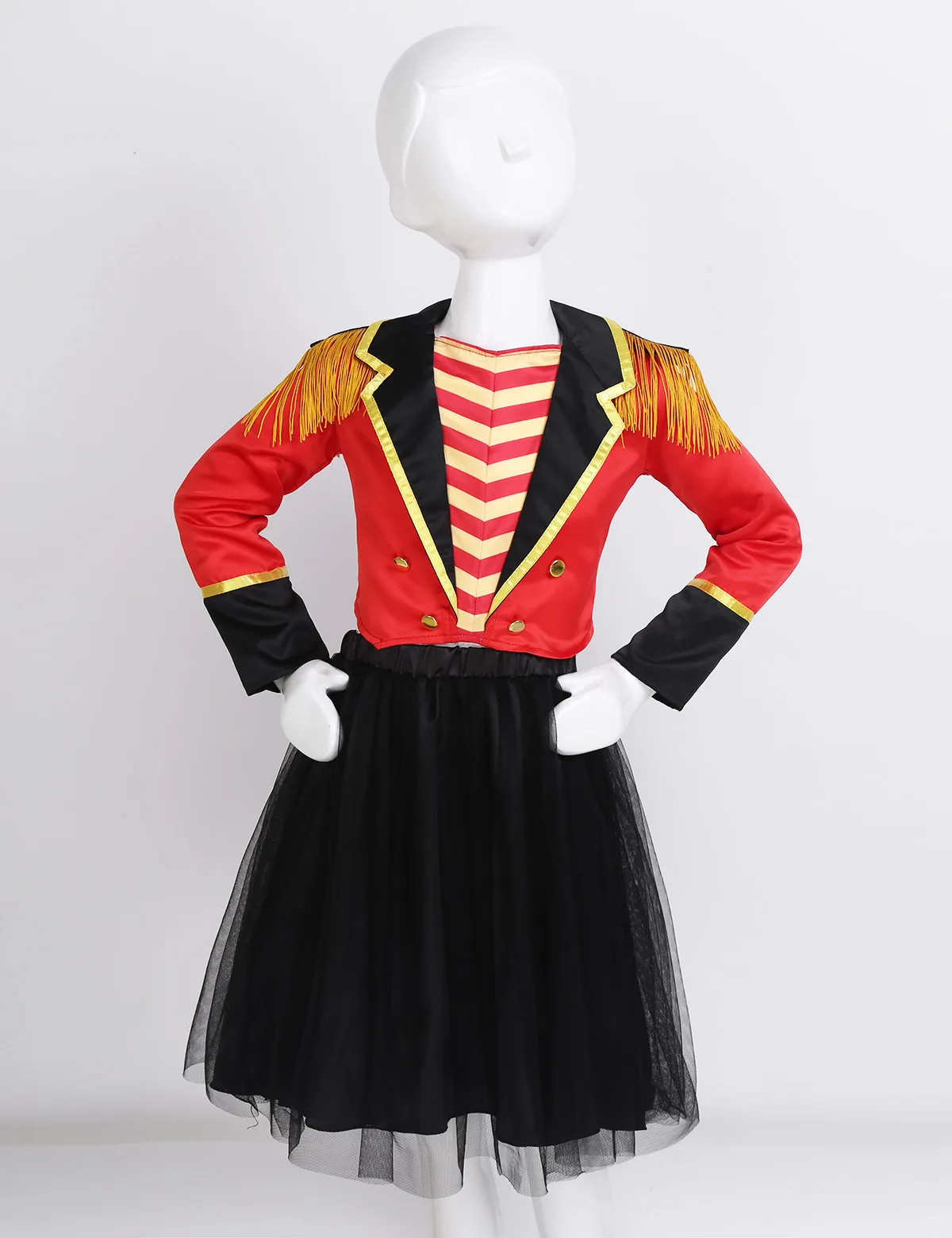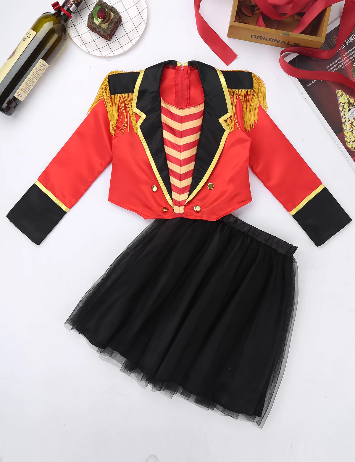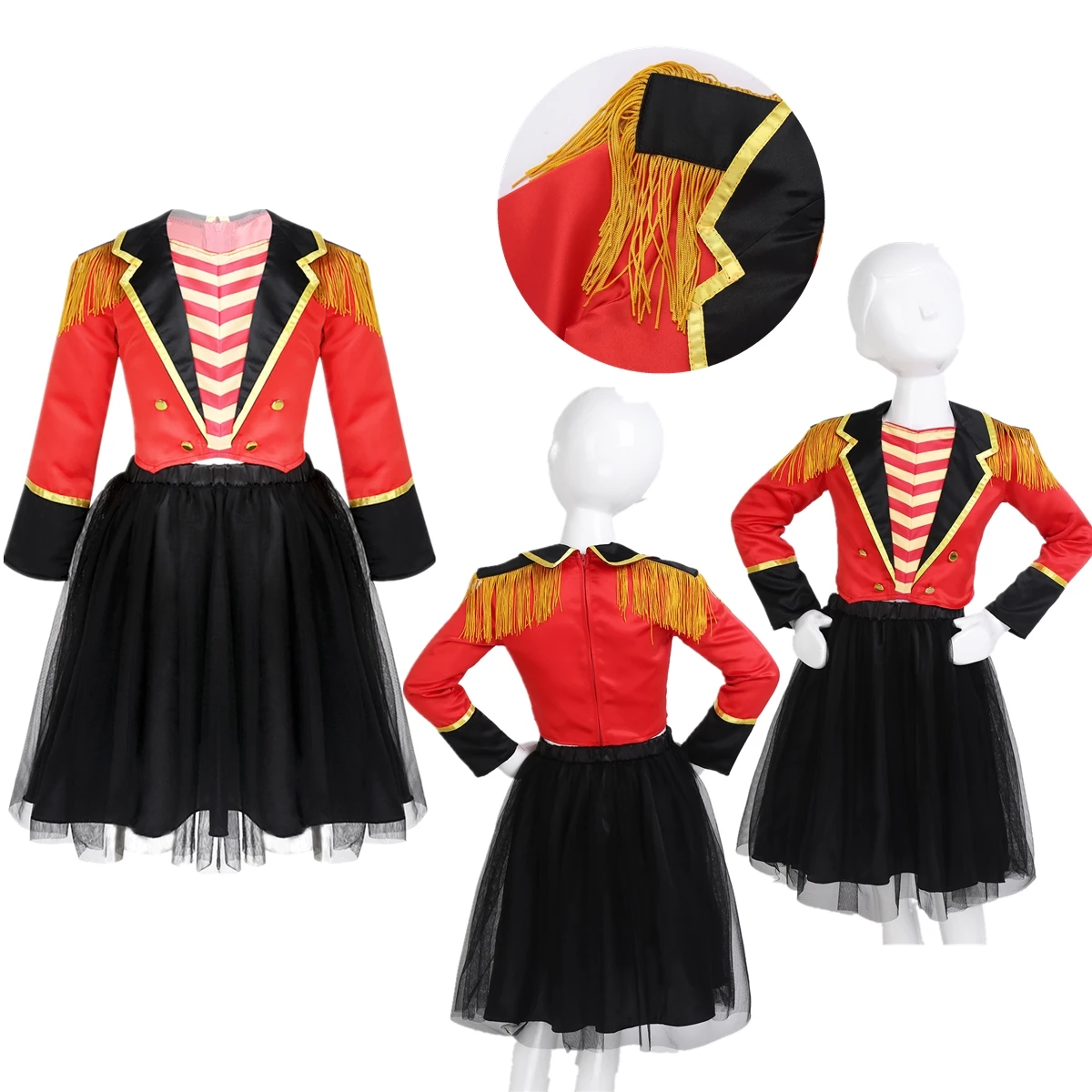 Детский костюм циркового кольца для девочек, костюм эполетта с кисточками и сетчатая юбка-пачка, комплект для Хэллоуина, карнавала, Косплея