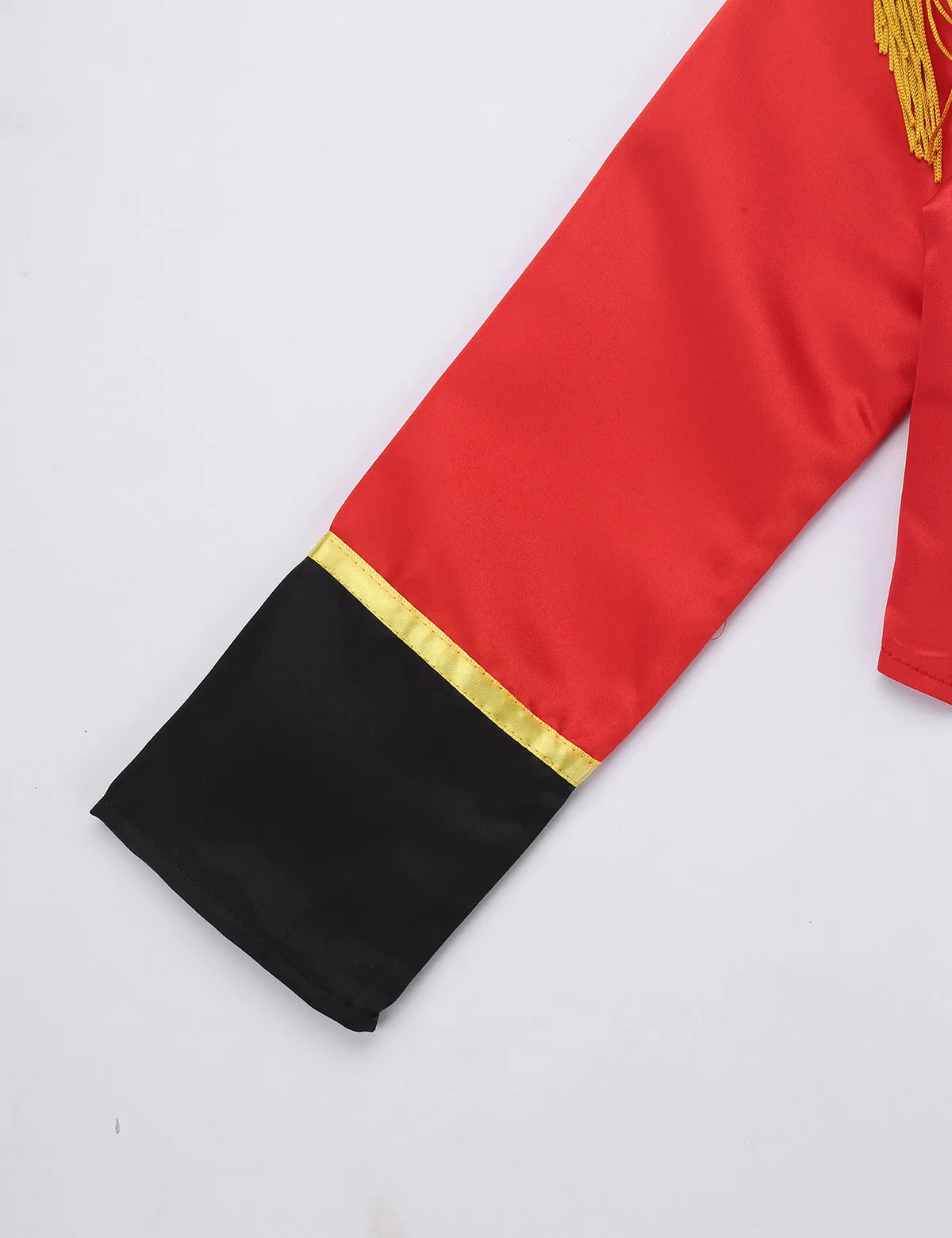 Особенности:Костюм изготовлен из полиэстера, атласа и сетчатого материала, ручная стирка.Таблица размеров означает возраст для девочек, но только для общего руководства.Куртка с длинными рукавами; Плечи с кисточками; Дизайн с лацканами. Дизайнерская рубашка в полоску. Украшен золотыми пуговицами. Скрытая молния сзади.Комплект из 2 слоев юбка-пачка с удобная эластичная резинка на талии, Топ Мягкий сетчатый слой, 1 атласную подкладку. Отличный праздничный подарок для вашей девочки.Подходит для Хэллоуина, карнавала, косплея, вечерние темы, ролевых игр, нарядов, фотографий, праздников и т. д.