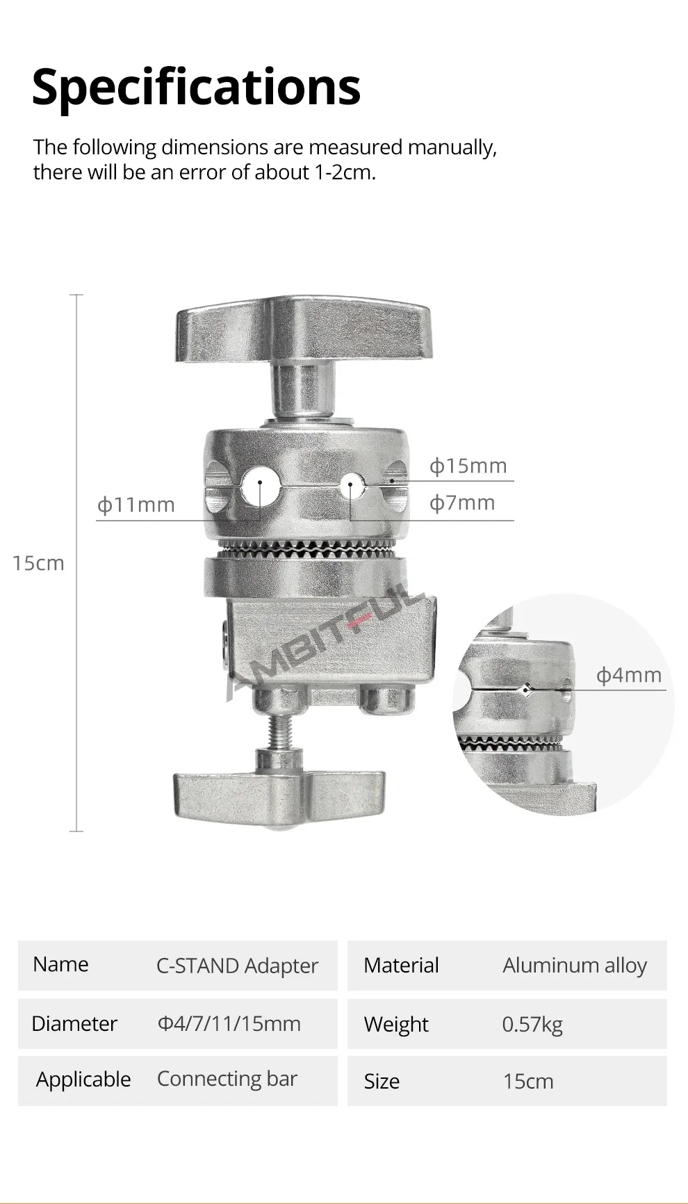 Сверхмощная рукоятка 1,5 см 15 мм C, монтажный адаптер, металлический держатель, фотография, стойка, удлинитель стрелы
