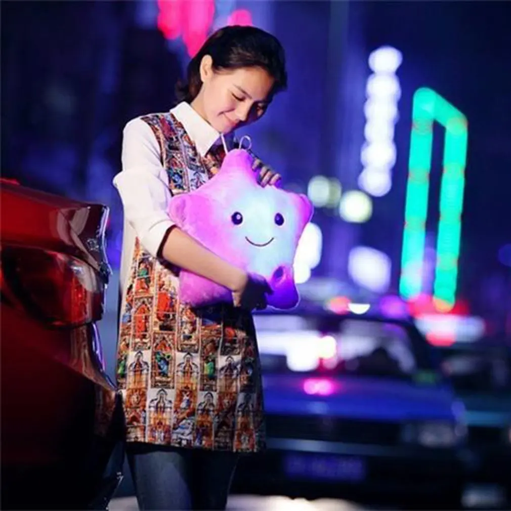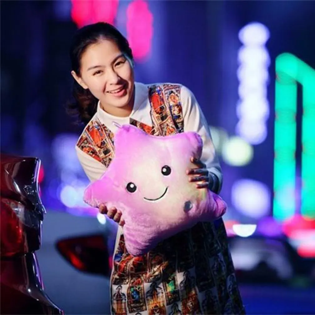 34 см креативная игрушка светящаяся Подушка Мягкая Плюшевая светящаяся цветная подушка со звездами светодиодный светильник подарок для детей и девочек
