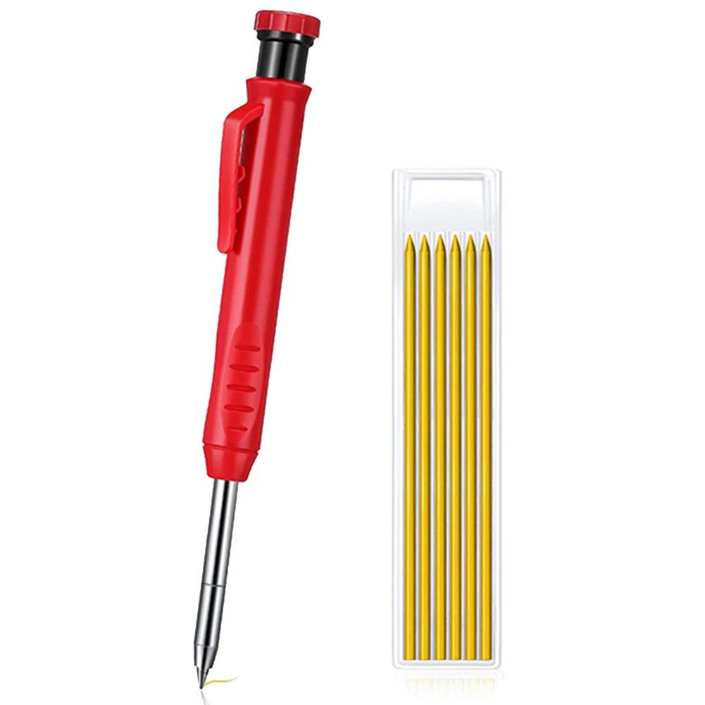 Твердый плотничный карандаш с 7 стержнями, встроенная точилка, механический карандаш с глубоким отверстием, маркировочный инструмент