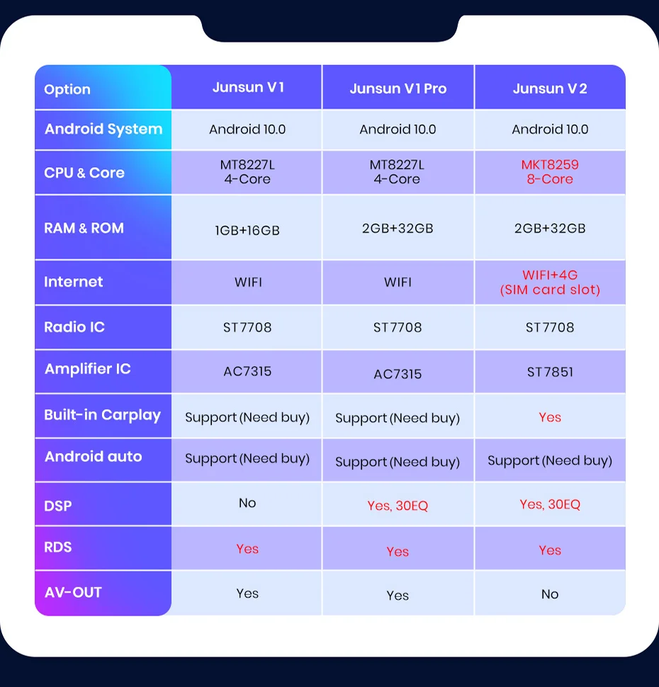 Недавно выпущенная версия Junsun UI 3,0, она будет работать более удобно, потому что большинство ваших ежедневных потребностей в вождении будет удовлетворены этим пользовательским интерфейсом, сделает интерьер Вашего автомобиля более крутым.Обратите внимание:-Современное оборудование с местных складов в Испании, Польше и России по-прежнему Junsun 2,0 UI. Если вам необходимо обновить версию Junsun UI 3,0 после покупки, пожалуйста, свяжитесь с нами, чтобы обновить прошивку.-Устройство, отправленное из Китая, версия Junsun UI 3,0
