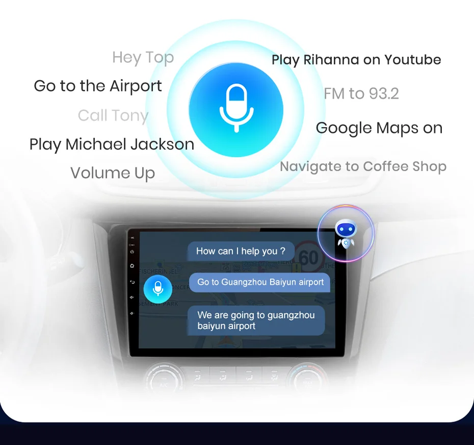 Support AI voice controlAllow you to make phone calls, navigate, play music... (Optional)