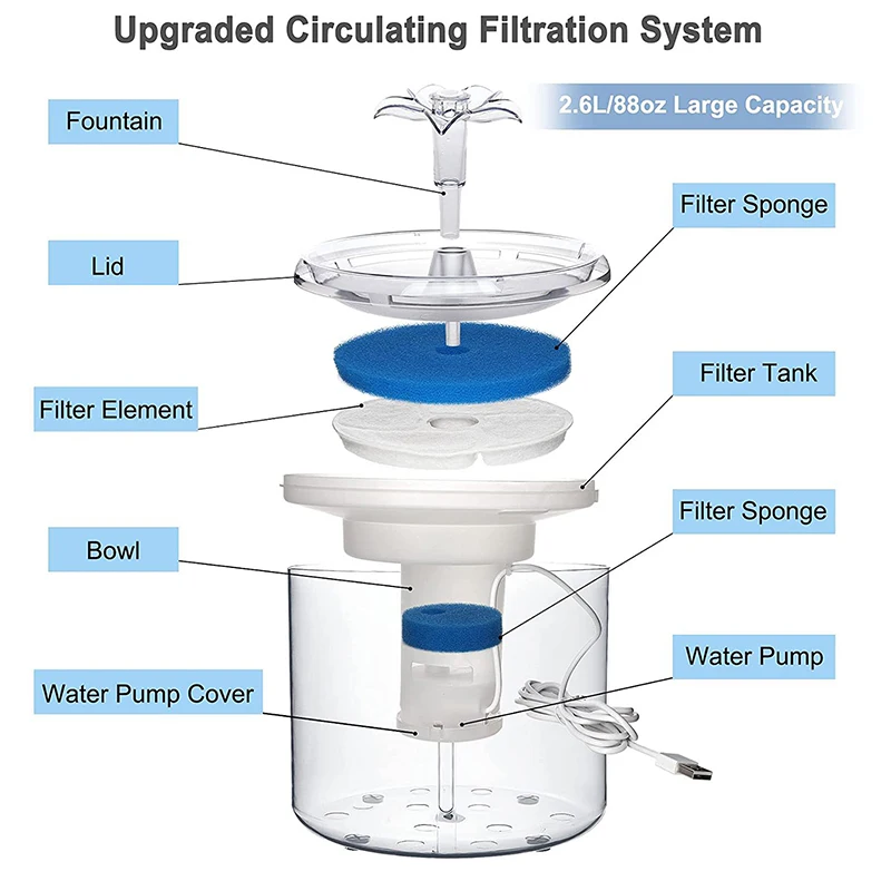 Интеллектуальный кошачий фонтан для воды с краном, дозатор для воды для собак, прозрачная поилка для животных, питьевой фильтр, питатель, датчик движения Характеристика: Автоматический фонтан для воды для домашних животных Полностью прозрачный дизайн. 2L большая емкость отлично подходит для собак, кошек, домашних животных. 2 режима подачи воды, обеспечивая чистую проточную воду, сделайте ваших питомцев счастливее и здоровее. Спецификация продукта Материал: пищевой ПК Цвет изделия: полностью прозрачный Максимальная емкость: 2 литра (67 унций) Размер изделия: прибл. 16,5x16,5x15,5/6.5x6.5x6.1in (Д * Ш * В) Время замены фильтра: один раз в месяц для достижения хорошего эффекта фильтрации. (Заменяйте фильтрующий элемент один раз в 2 месяца в режиме Интеллектуального датчика) Советы: Регулярно очищайте насос, чтобы продлить срок службы Теплые Примечания: О датчике движения, который может адсорбироваться только на глянцевой и гладкой поверхности, матовая стена или пол не отвечают условиям. (его можно адсорбировать к корпусу фонтана WF060)