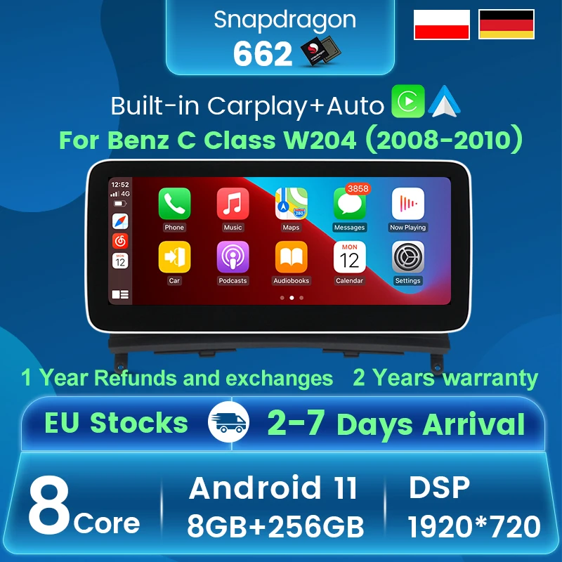 8G 256G Android 11 Carplay Авто dvd GPS навигация Мультимедиа Радио для Mercedes Benz C-Class W204 S204 2008 - 2010 NTG 4,0 автомагнитола магнитола навигатор для авто