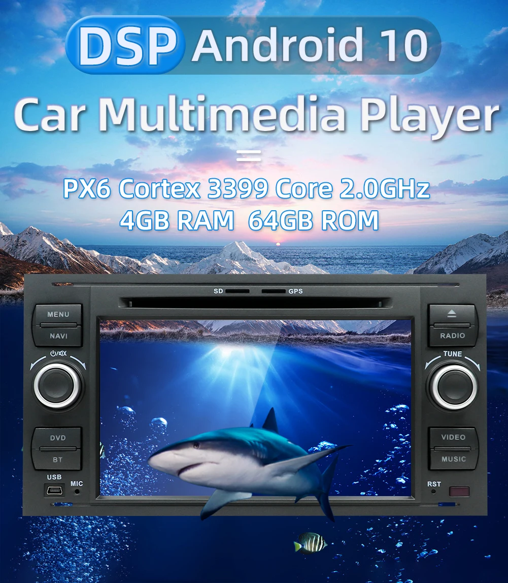 Цифровой DSP 30 EQ Android 10,0 + емкостный экран + 1024*600 + Восьмиядерный процессор RK3399 2,0 GHZ CPU + DDR3 4 GB Flash + 64 GB Memory