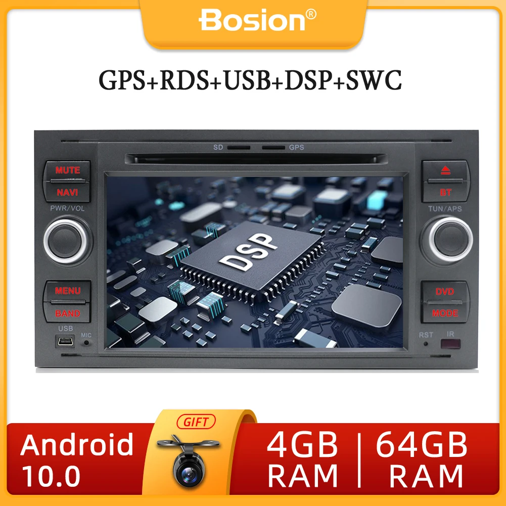 2 Din автомобильное Стерео Радио мультимедийный плеер DVD Android 10,0 для Ford MondeoFocusTransitC-MAXS-MAXFiestaKuga Carplay DSP