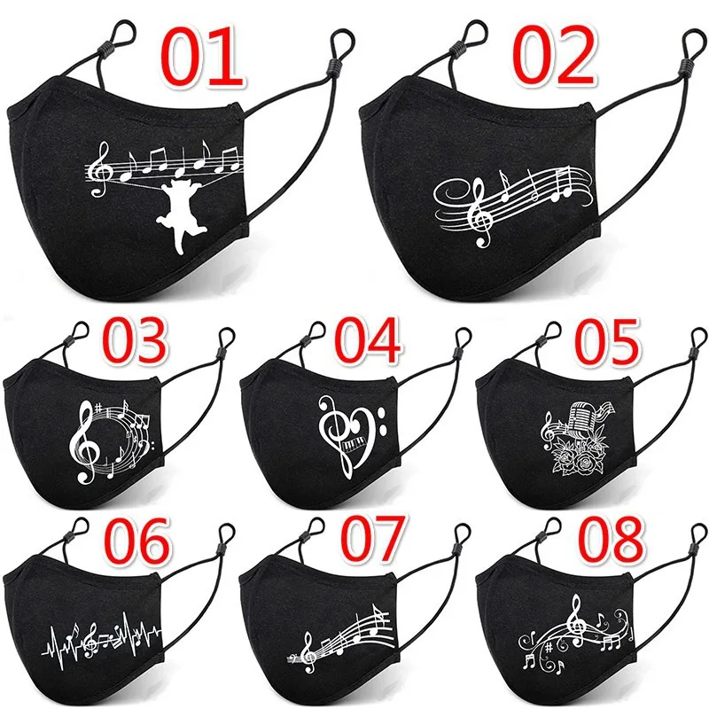 Маска Защитная с принтом в виде музыкальной ноты, черная Пылезащитн...